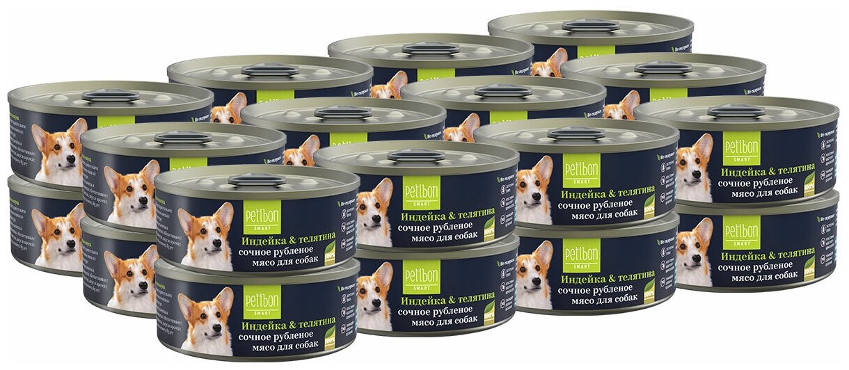 Корм консервированный PETIBON SMART для собак рубленое мясо с индейкой и телятиной, упаковка 24 шт. (100 гр)