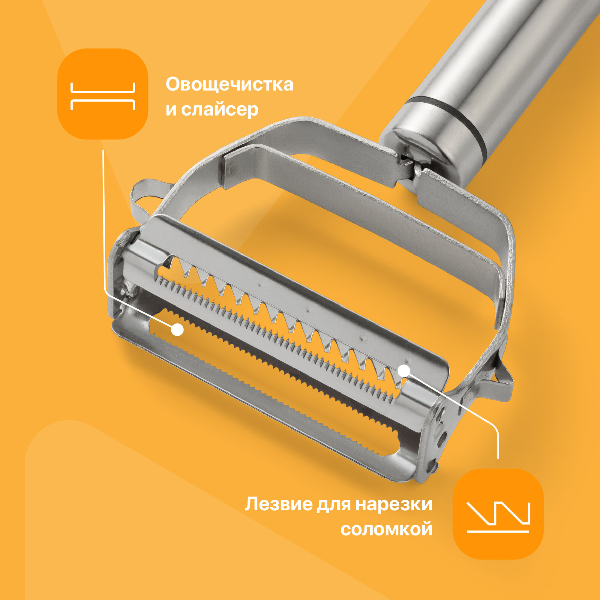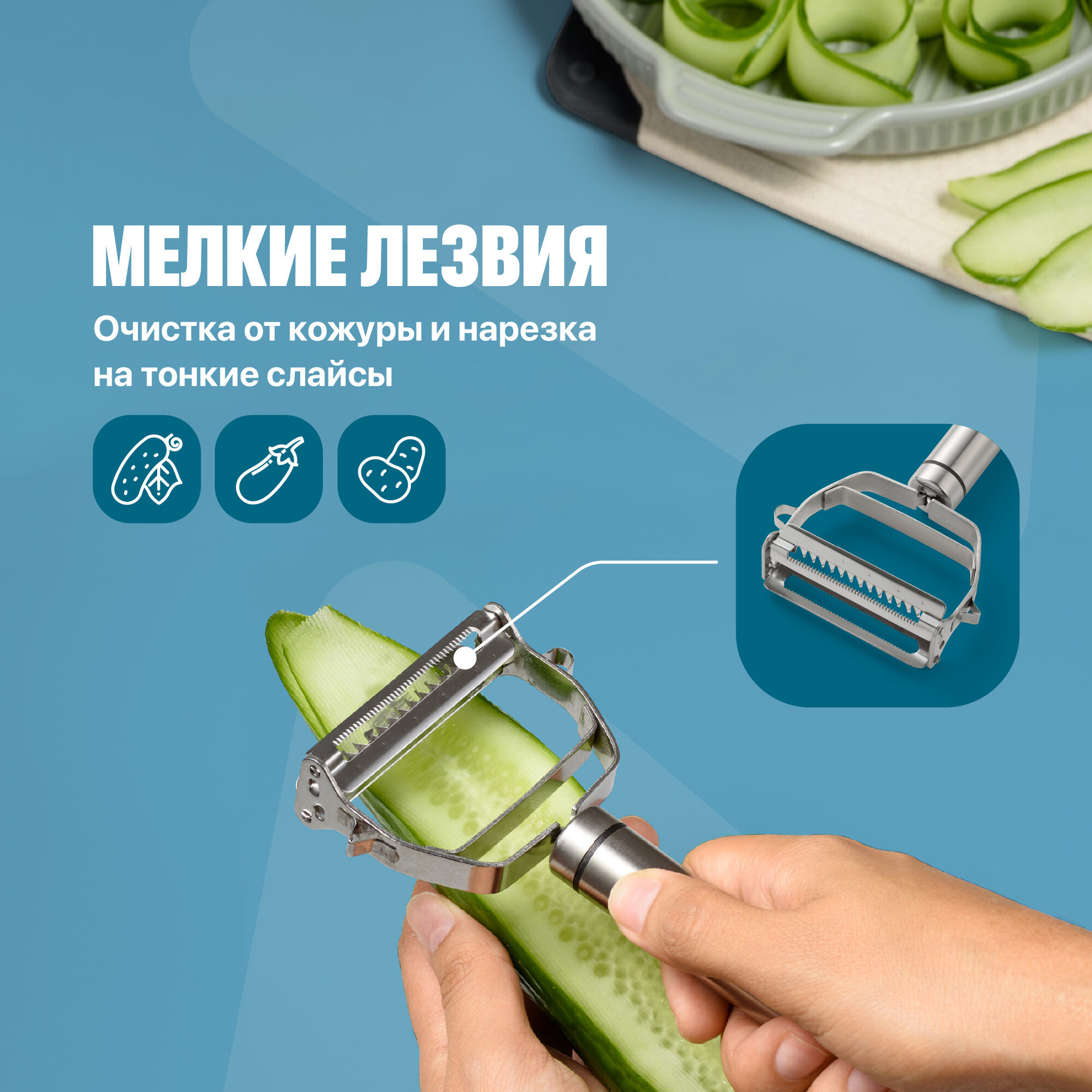 Овощечистка ручная для овощей и фруктов Shiny Kitchen, Нож слайсер для нарезки, Картофелечистка интересное: