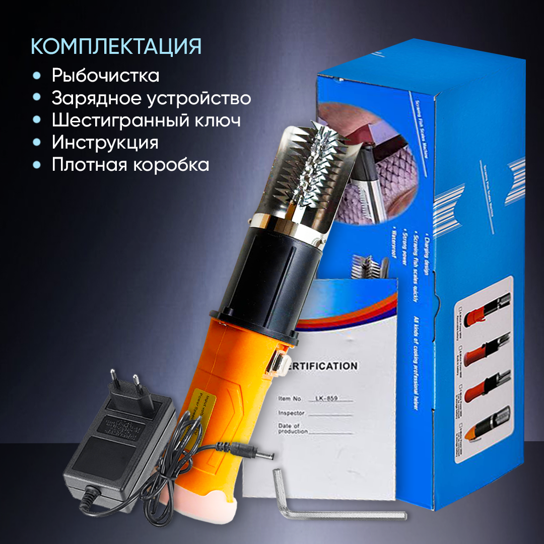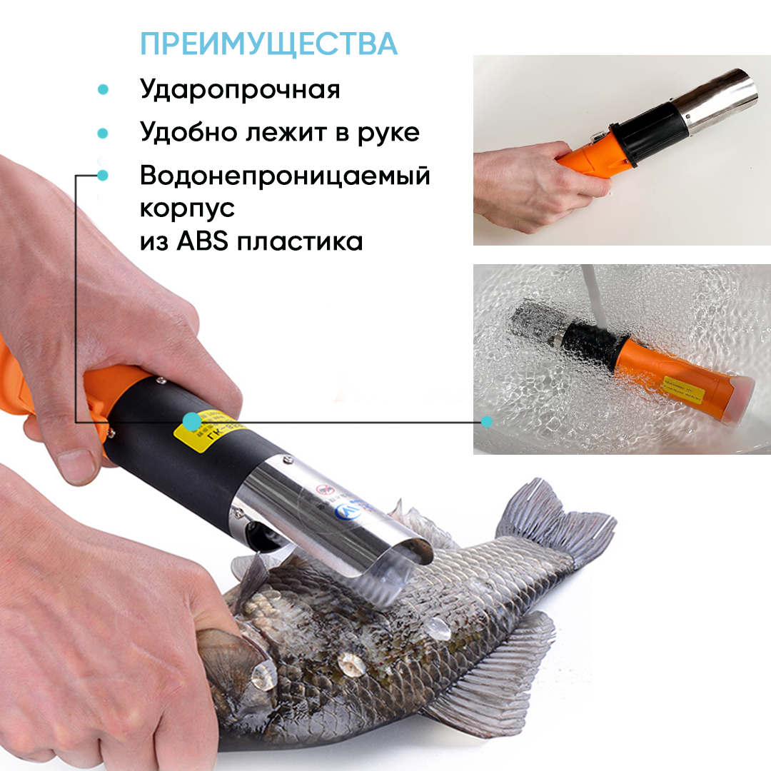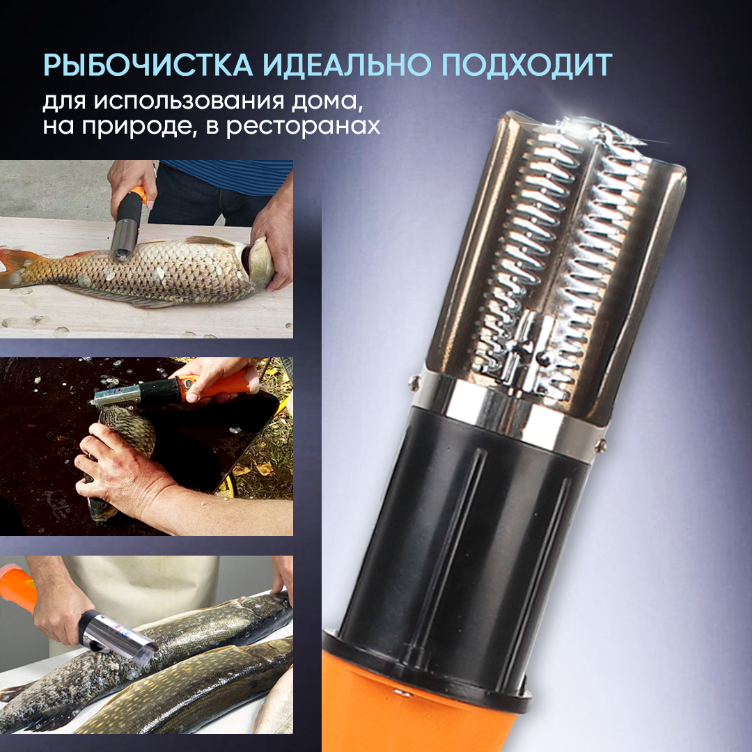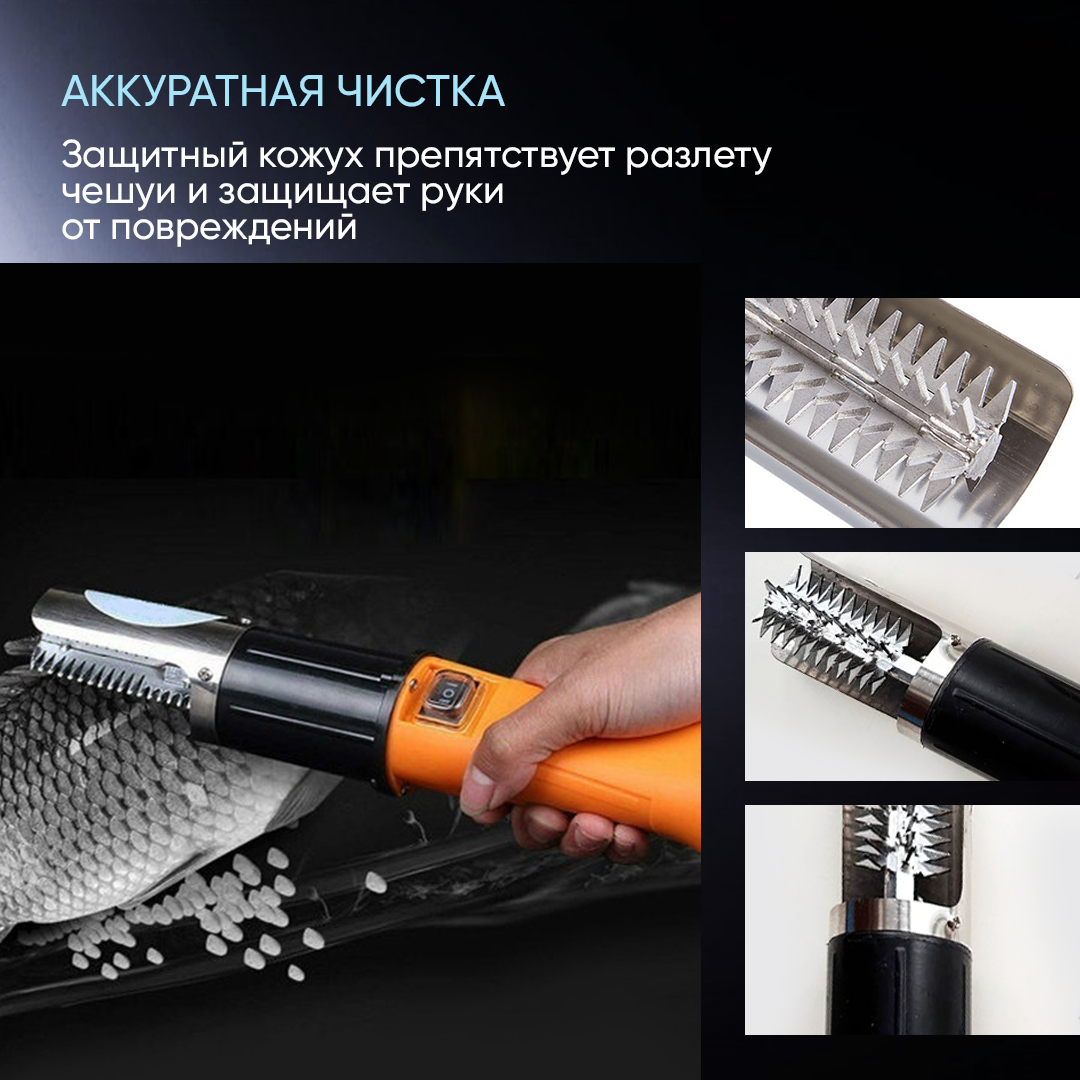 Рыбочистка электрическая беспроводная с аккумулятором оранжевая