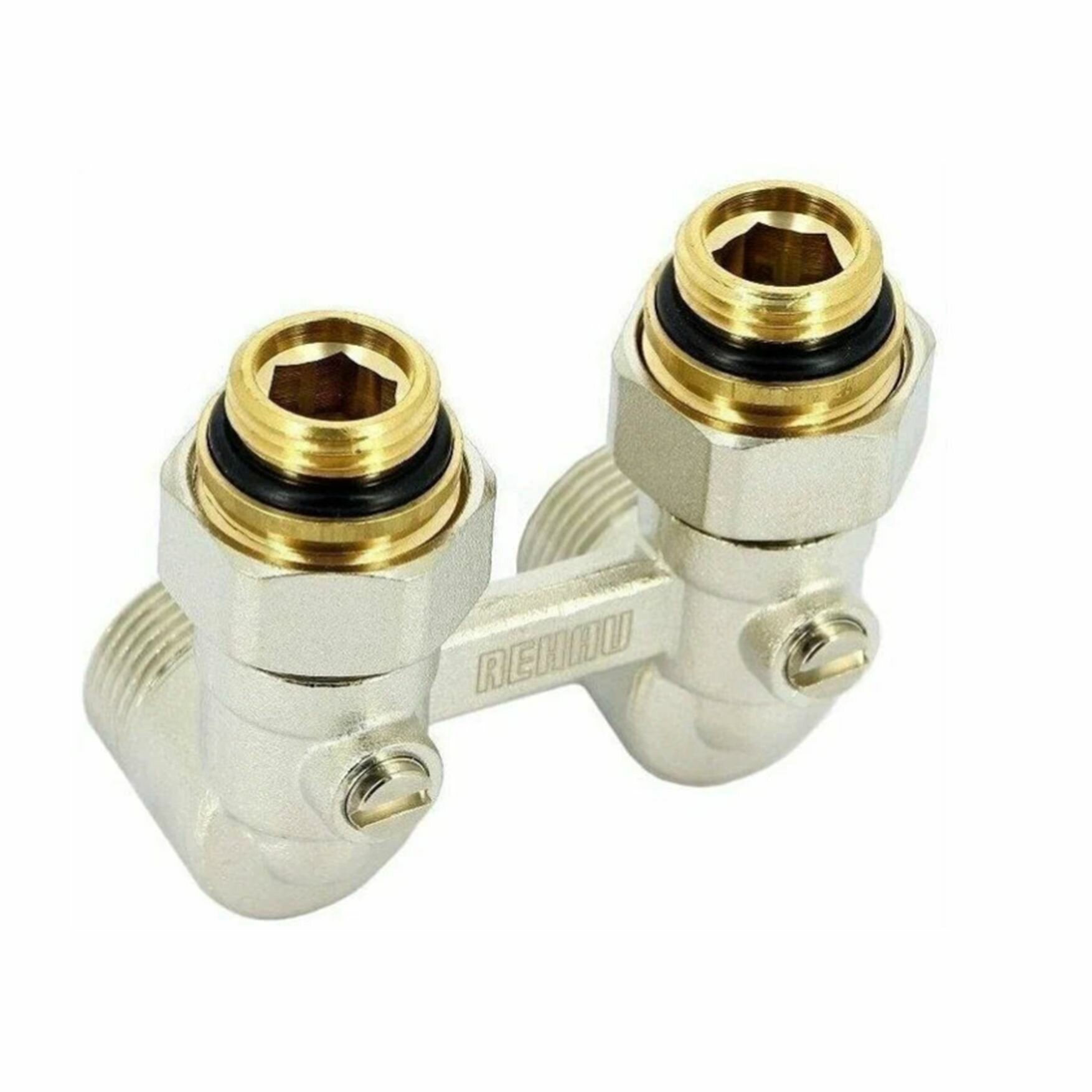 Узел нижнего подключения Rehau (12407371001) угловой 1/2 НР(ш) х 3/4 ЕК НР(ш) для радиатора с шаровыми кранами и накидными гайками
