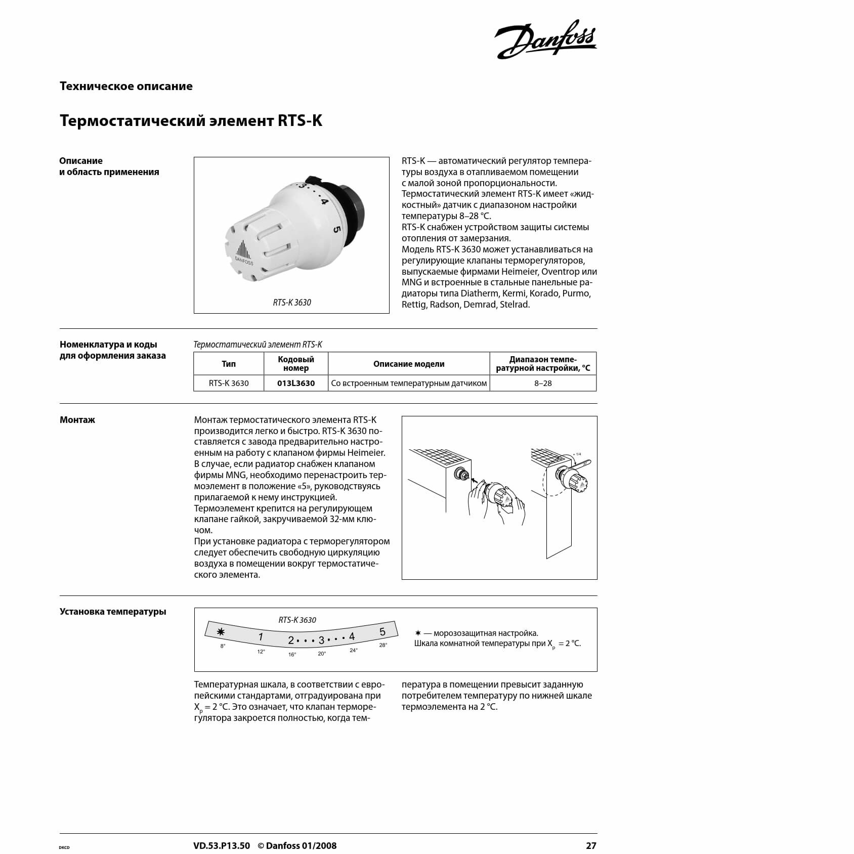 Термостат головка Danfoss RTS-K 3630 (013L3630) интересное: