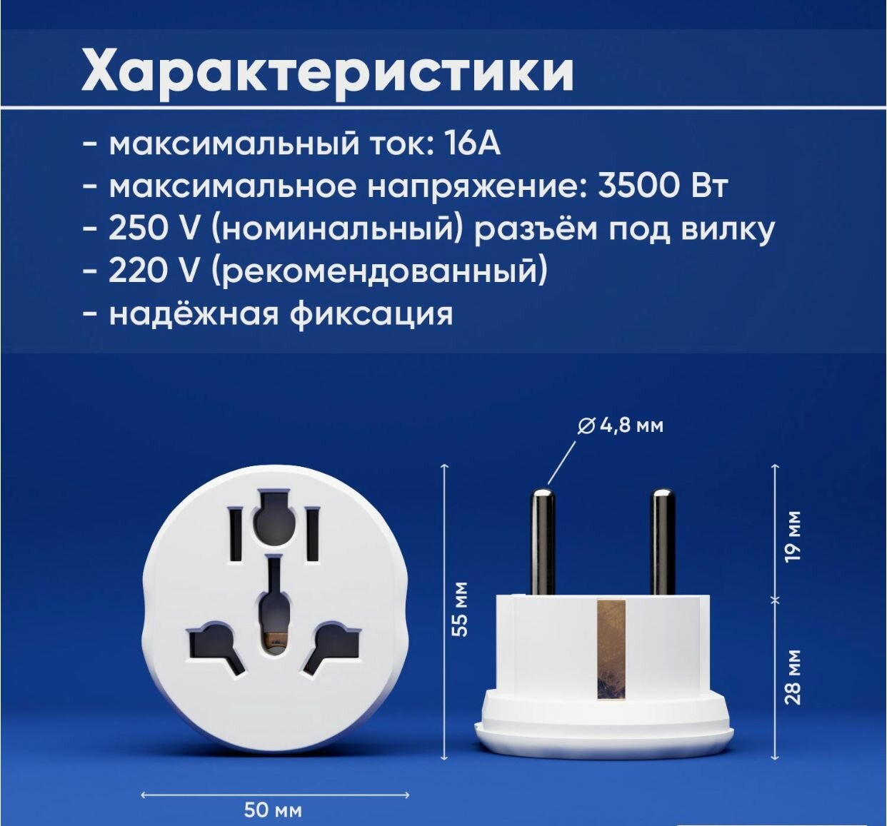 Евро-переходник на все виды розеток. Комплект 2 шт