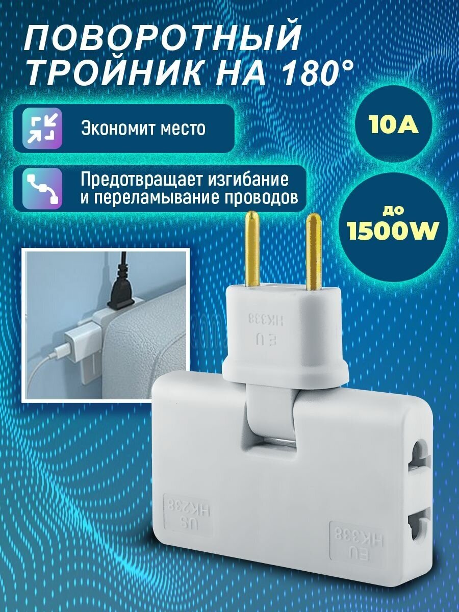 Купить Тройник для розетки плоский, разветвитель сетевой поворотный