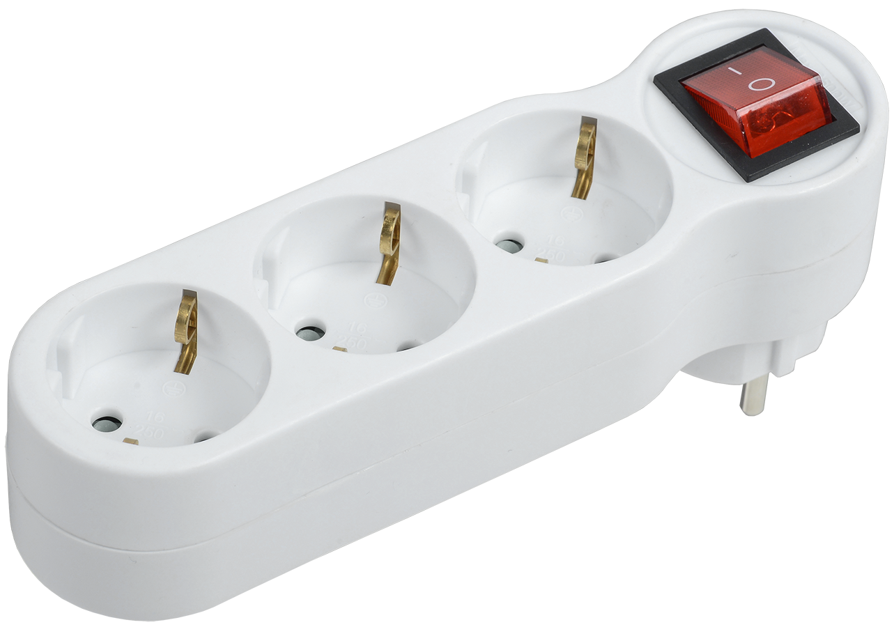 Тройник для розетки электрический с заземлением 16А, белый