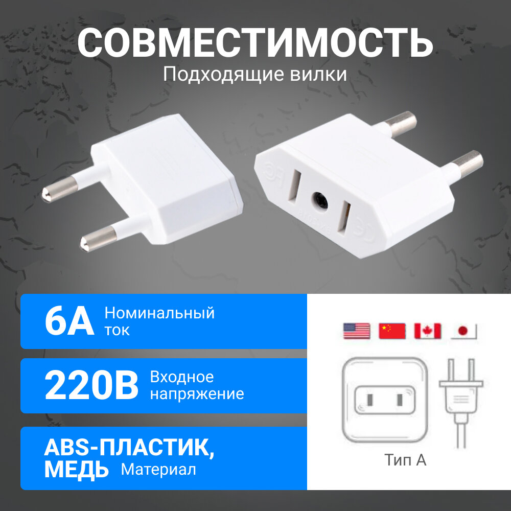 Сетевой адаптер - переходник на евро вилку для розетки с китайской и американской, 2 шт, белый интересное:
