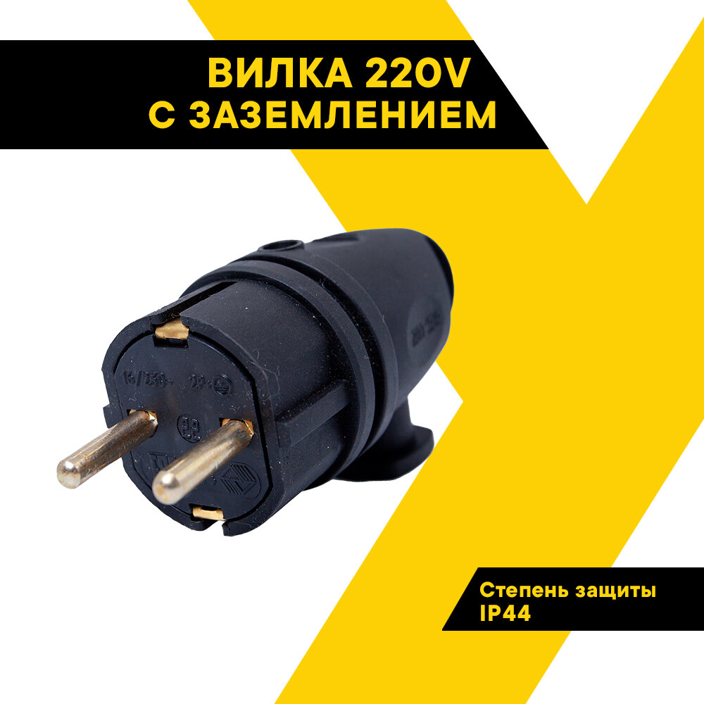 Вилка электрическая 220в, SVET,переносная, прямая, каучук, 220 В, 16А, SV0303-0008