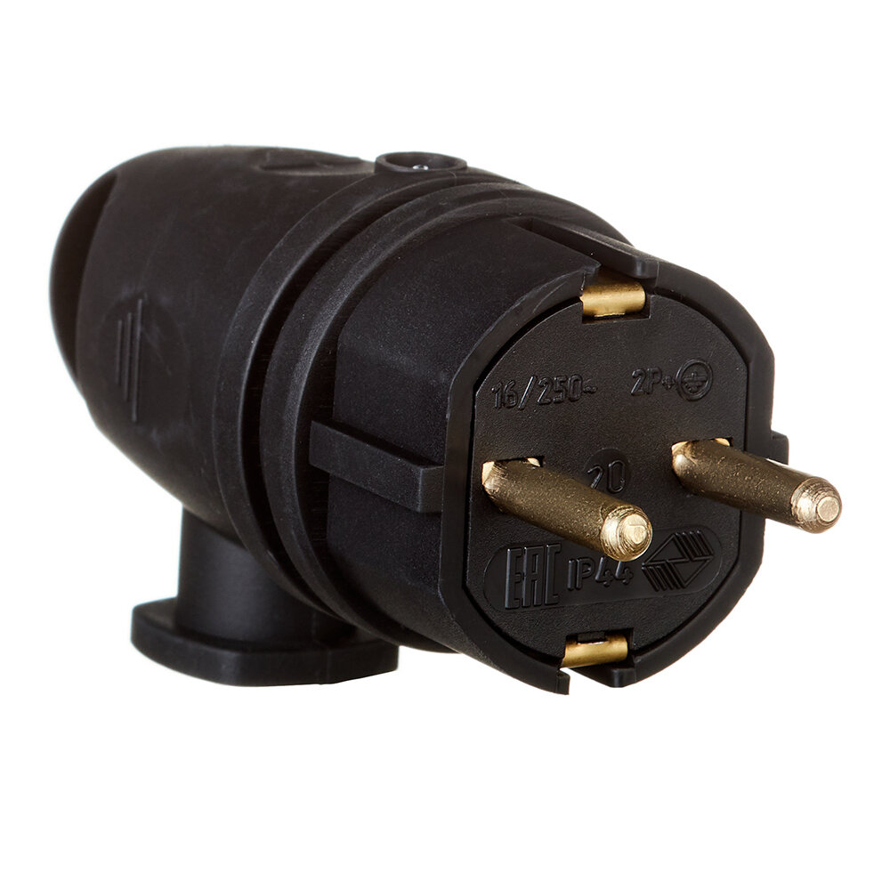 Вилка разборная, каучук, 16 А, 250 В, IP44, с з/к, черная.