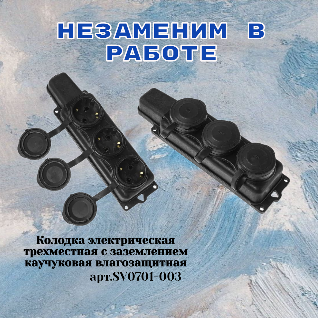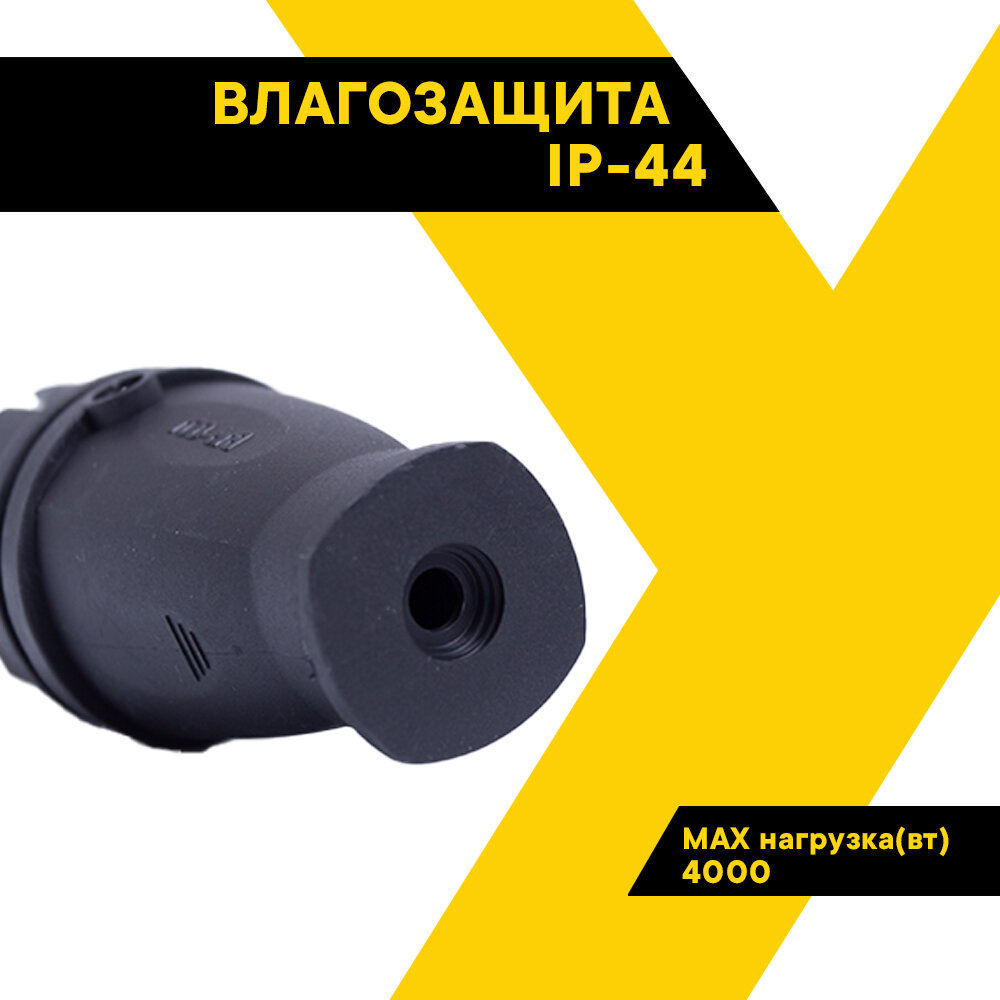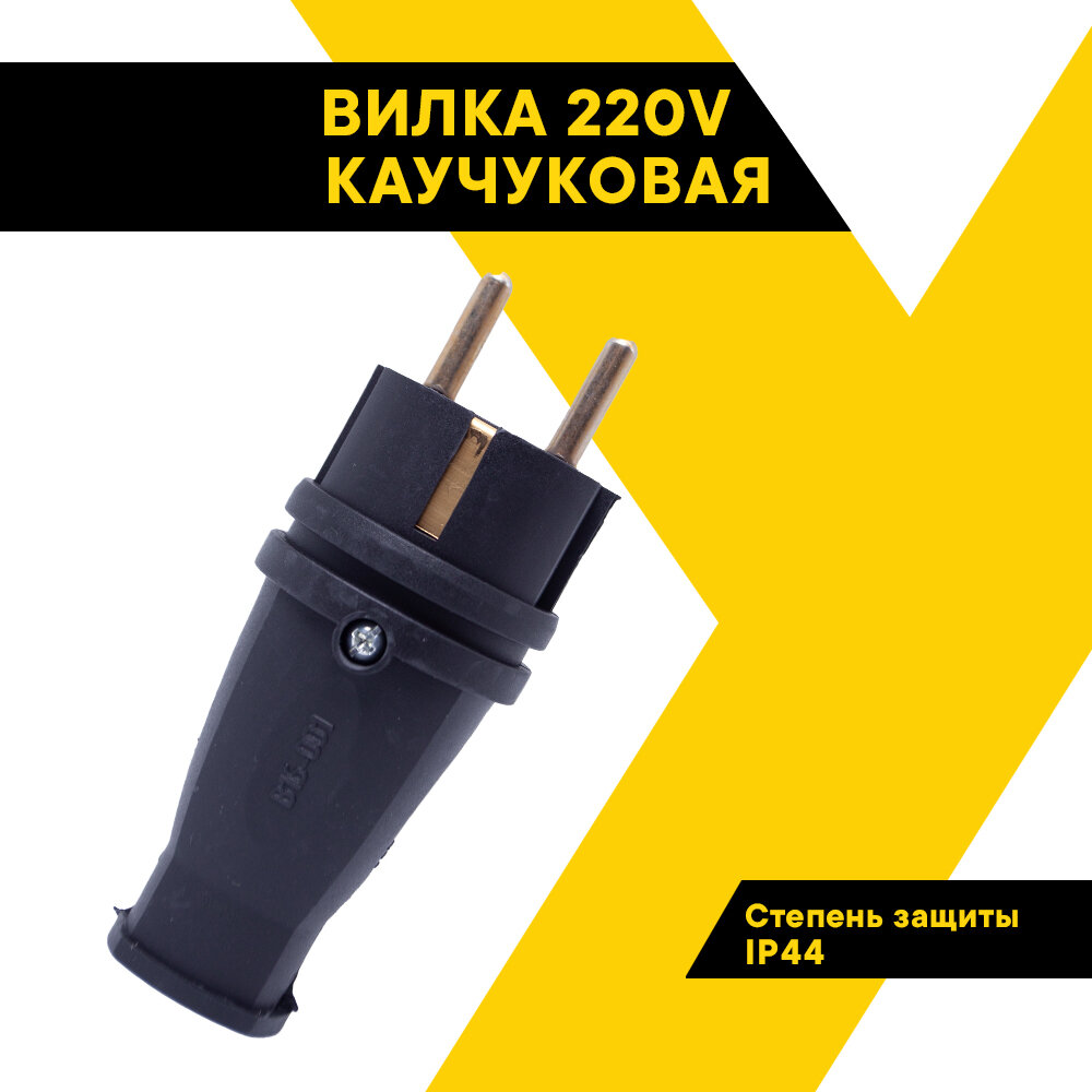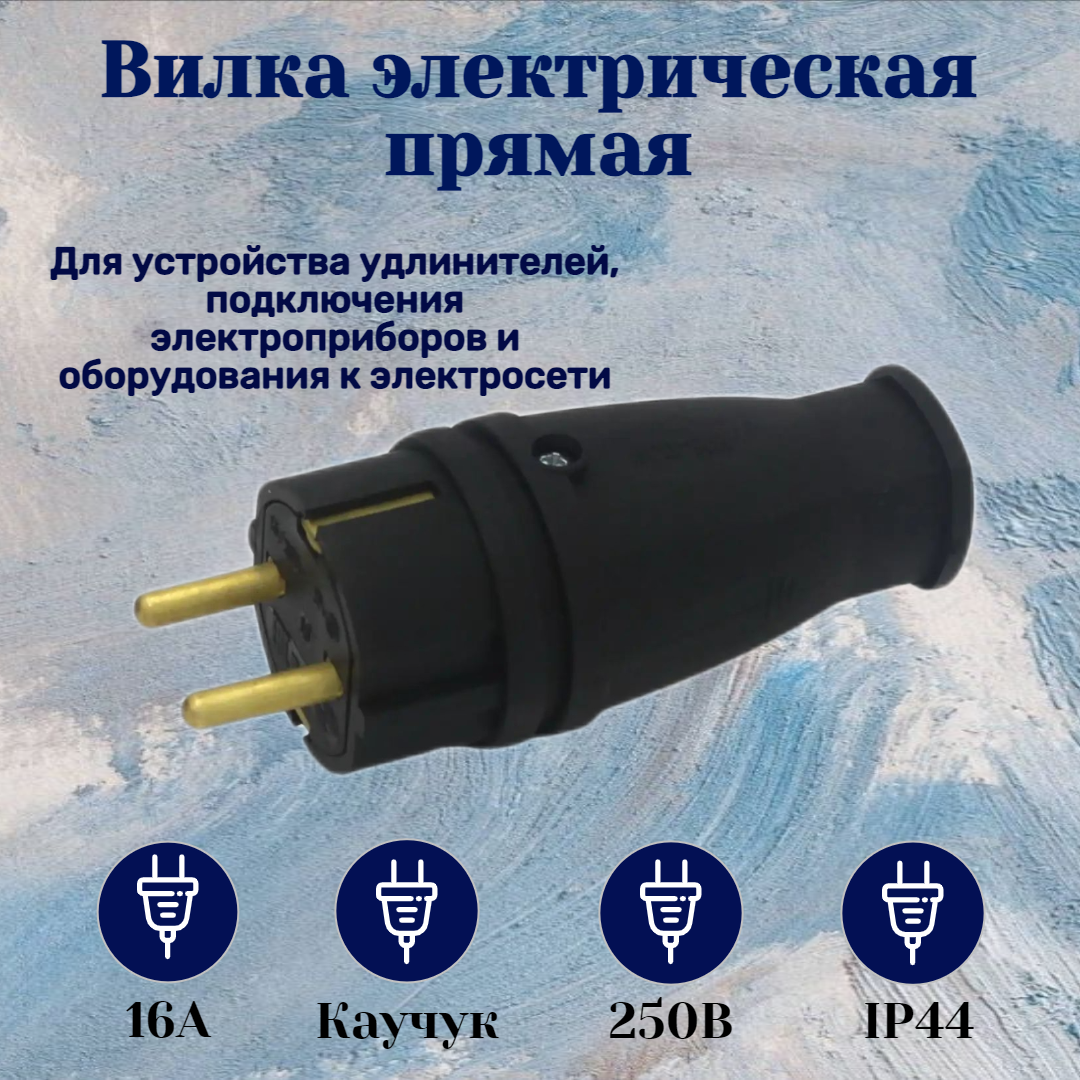 Вилка электрическая 220в, SVET,переносная, прямая, каучук, 220 В, 16А, SV0303-0008