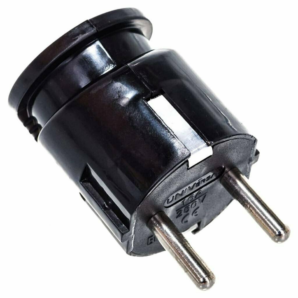 Вилка электрич. с заземл. угл. черн. 16А 250В (еврослот) UNIVersal А0105