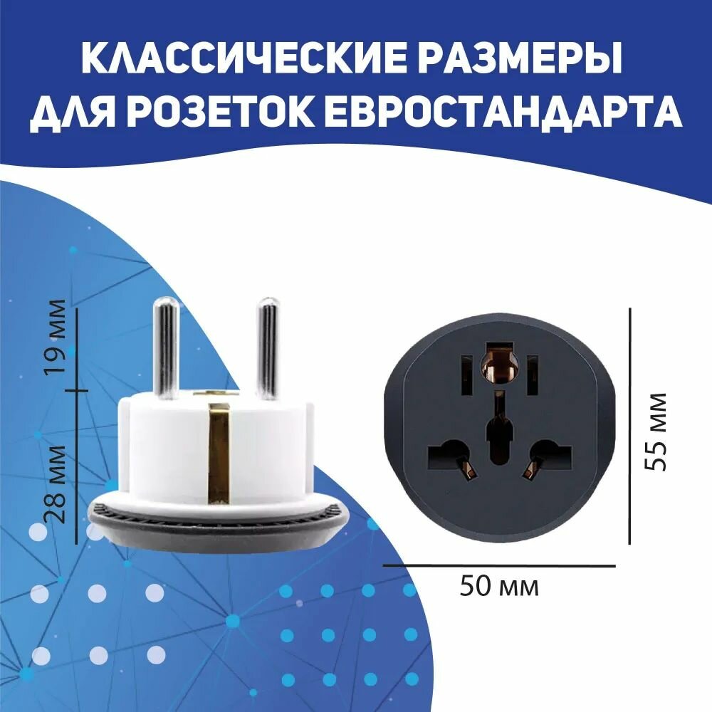 | Дополнительная информация | Евро переходник с заземлением, переходник с любой вилки на российскую с заземлением, евро розетка переходник, adapter |