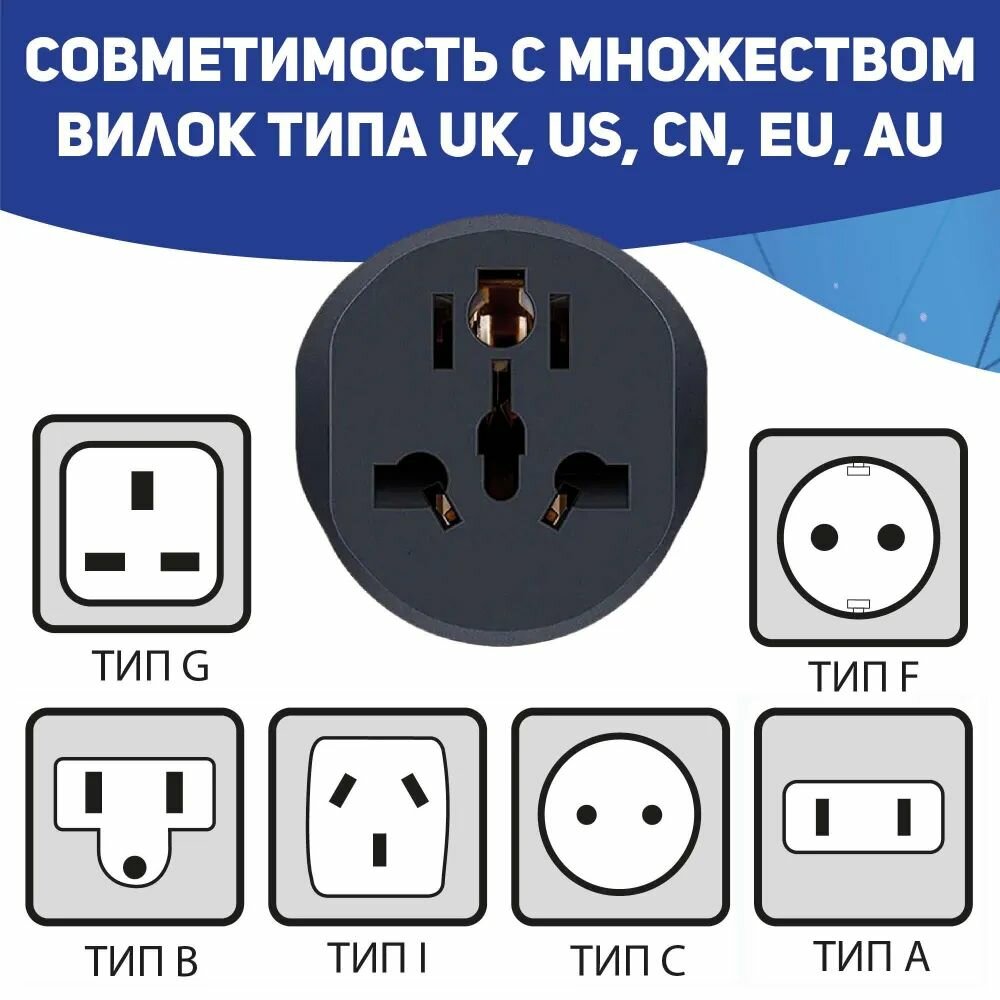 | Дополнительная информация | Евро переходник с заземлением, переходник с любой вилки на российскую с заземлением, евро розетка переходник, adapter |