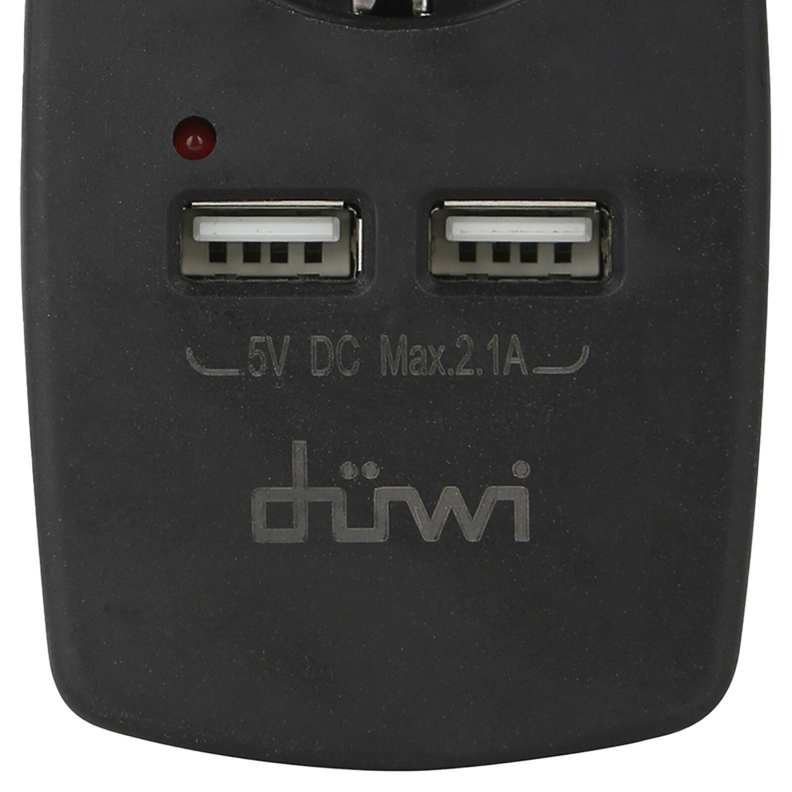 Розеточный адаптер duwi 1 гнездо + 2 USB порта с заземлением черный 16A 3680Вт 27419 3