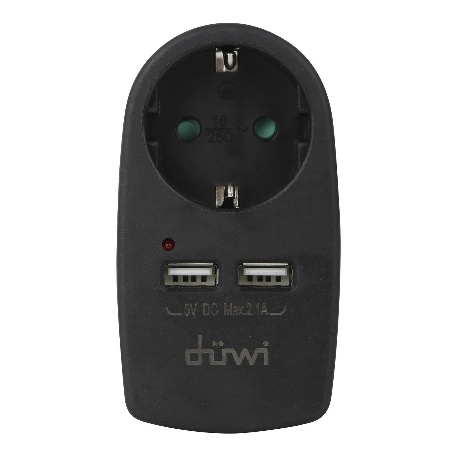 Адаптер розеточный 1 гнездо + 2 USB порта, с заземлением, черный, 16A, 3680Вт duwi 27419 3