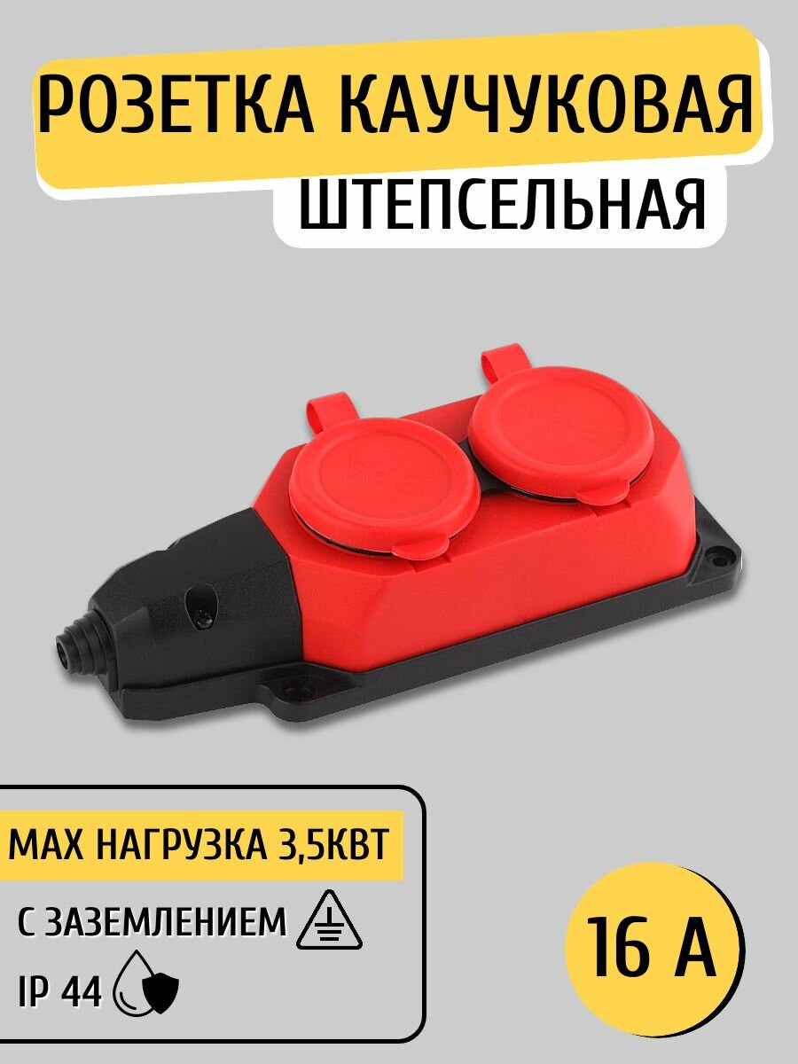 Колодка розеточная электрическая каучуковая ЭРА K-2e-B-IP44 влагозащищенная на 2 розетки, 16А