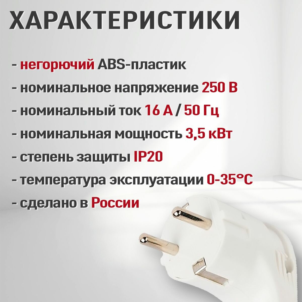 Вилка электрическая прямая с заземлением, евровилка плоская белая, 16А, Электро интересное: