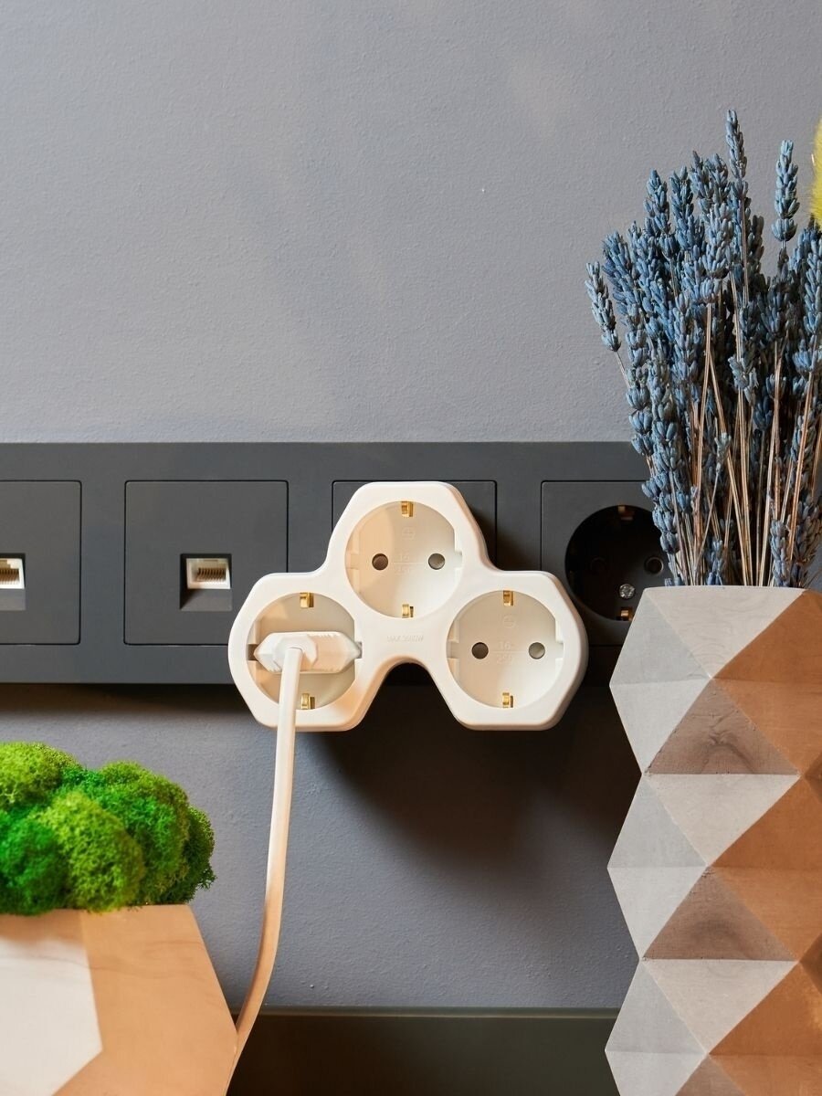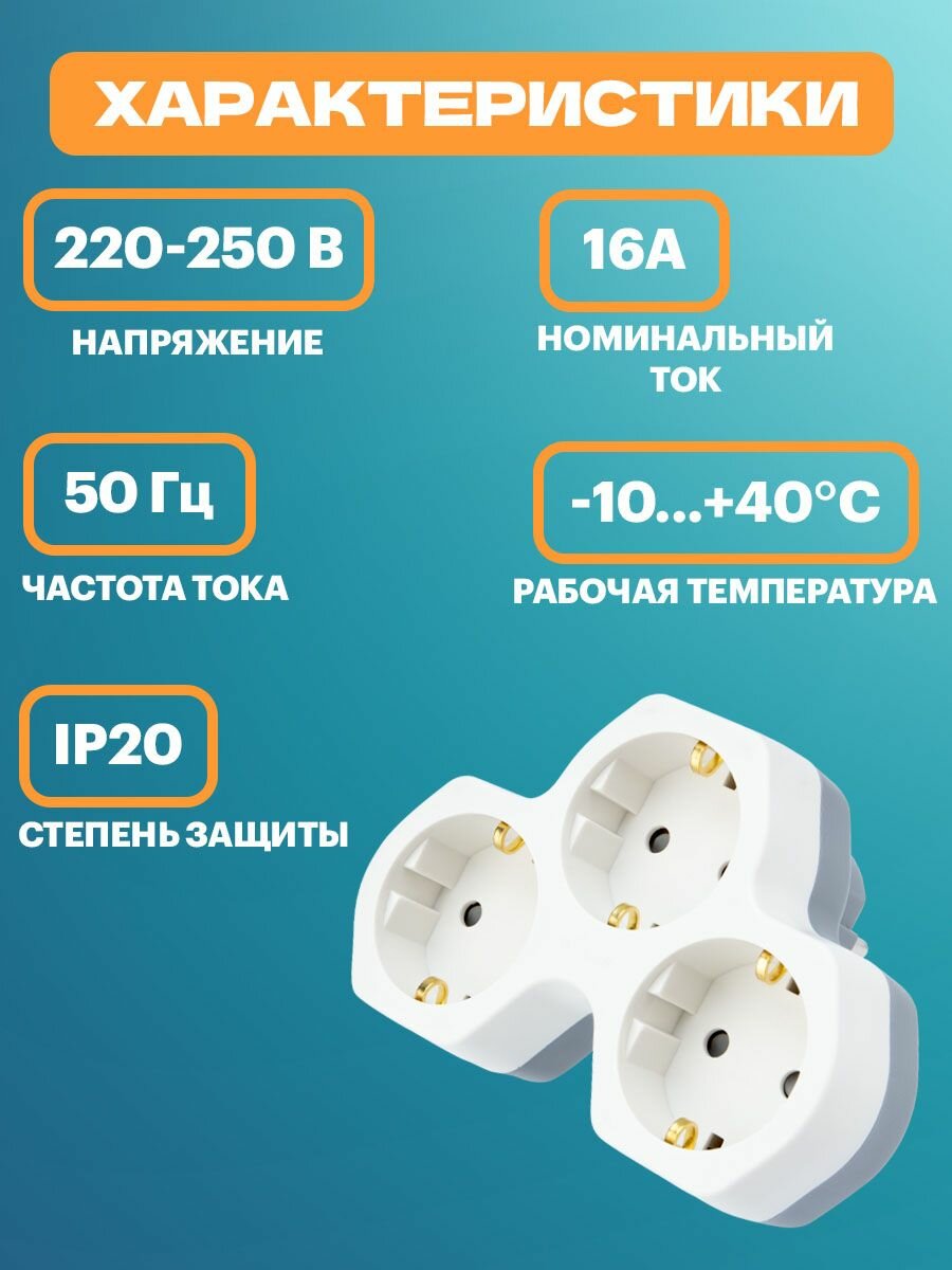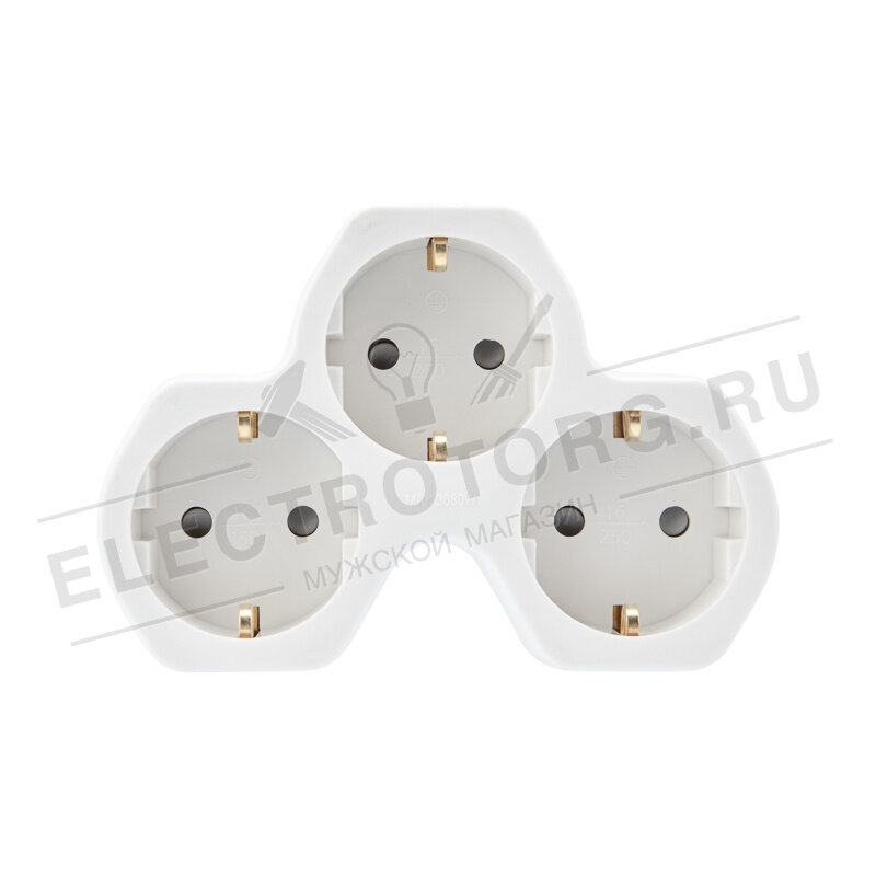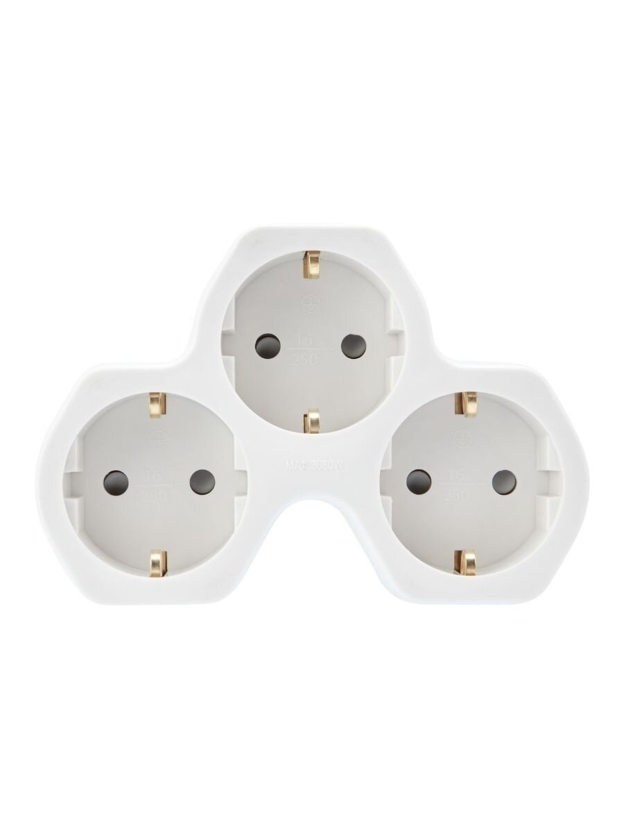 Тройник для розетки электрический с заземлением 16А, белый