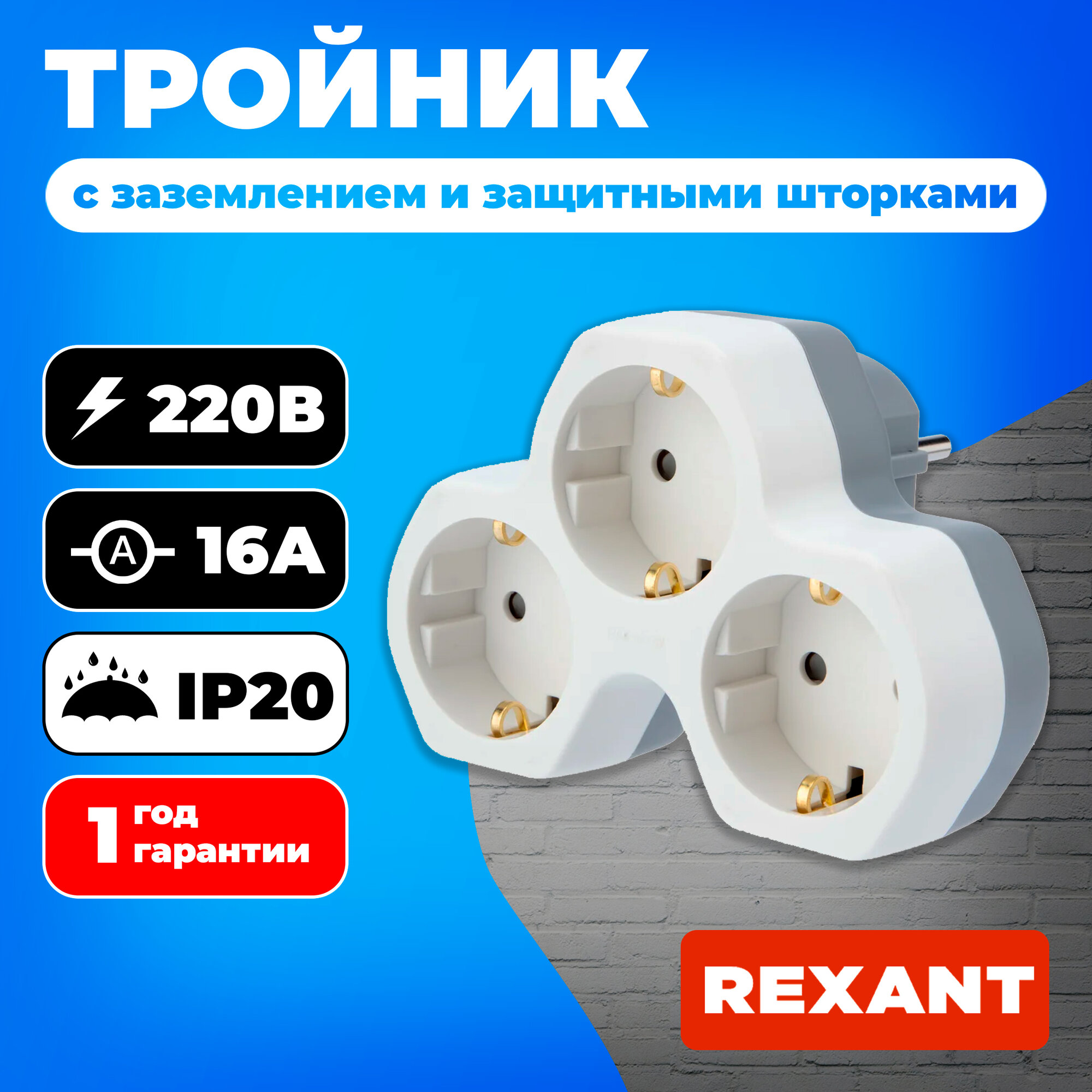 Тройник 11-1088 на 3 розетки "евро" со шторками белый Rexant (2 шт. в комплекте) интересное: