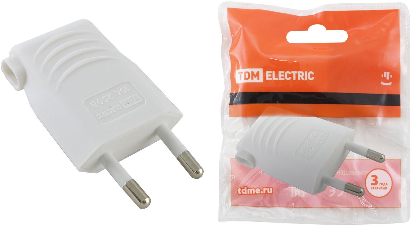 Вилка б/з белая 10А 250В (евровилка CEE 7/16) угловой вывод проводника TDM интересное:
