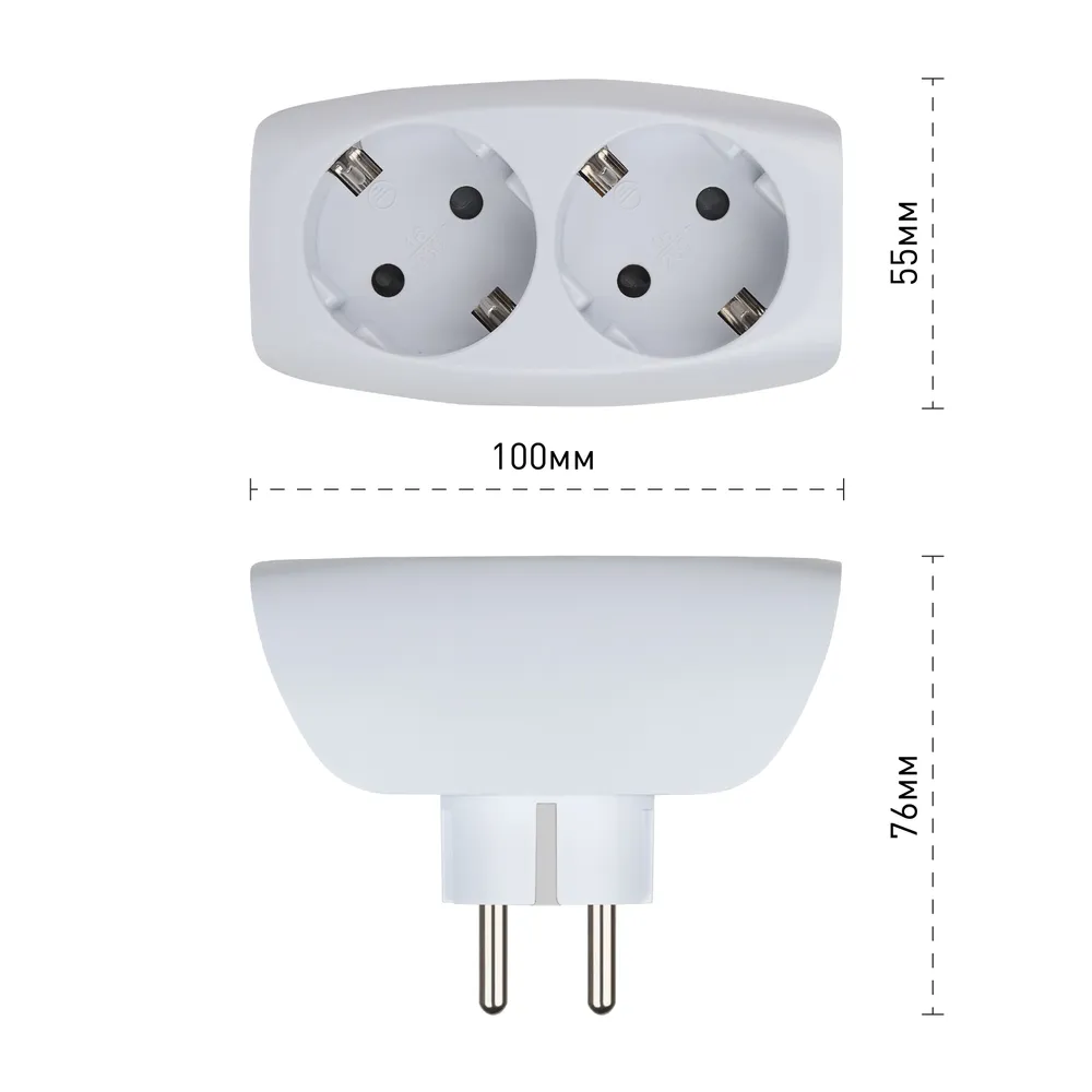 Тройник для розетки электрический с заземлением 16А, белый