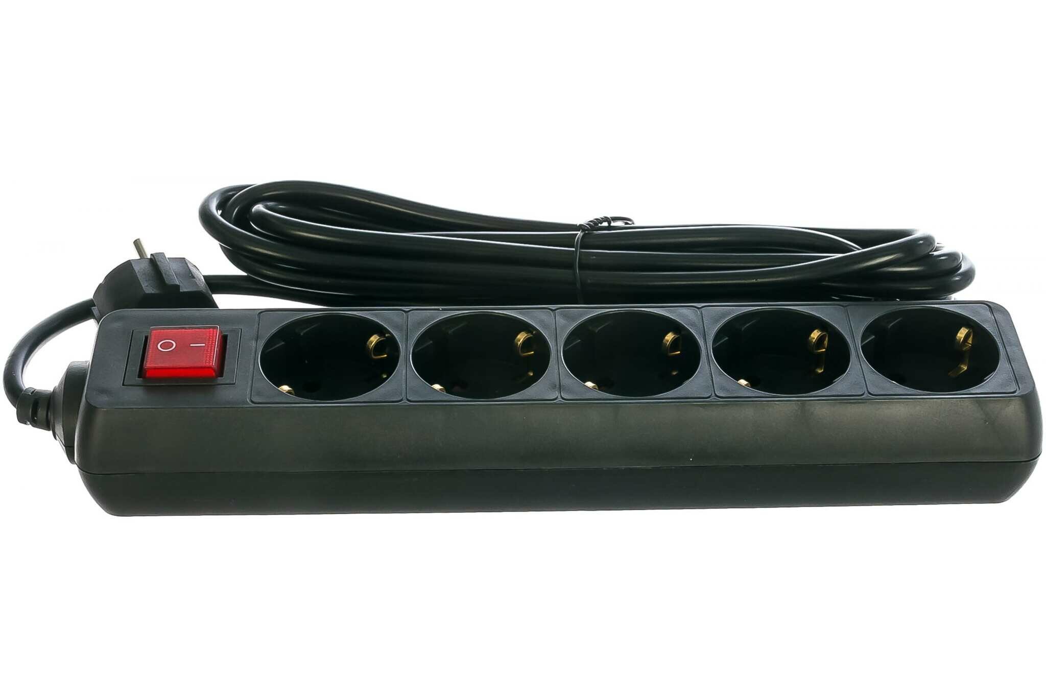 Удлинитель сетевой Фотон 5 розеток, 16А, с выключателем, с заземлением, цвет черный, 5 м
