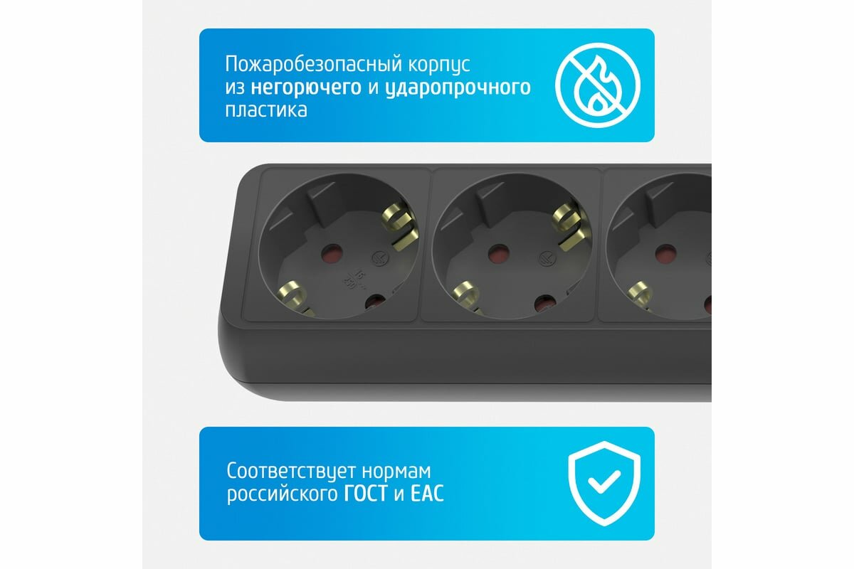 Удлинитель фотон 16-55ЕS, 5м, 5 розеток, 16А, с выкл., с заземл., Черный интересное: