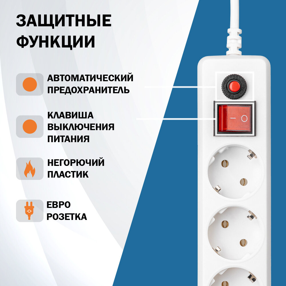Сетевой фильтр FILUM FL-SP3-5-3M-BL, 3 метра 5 розеток с заземлением