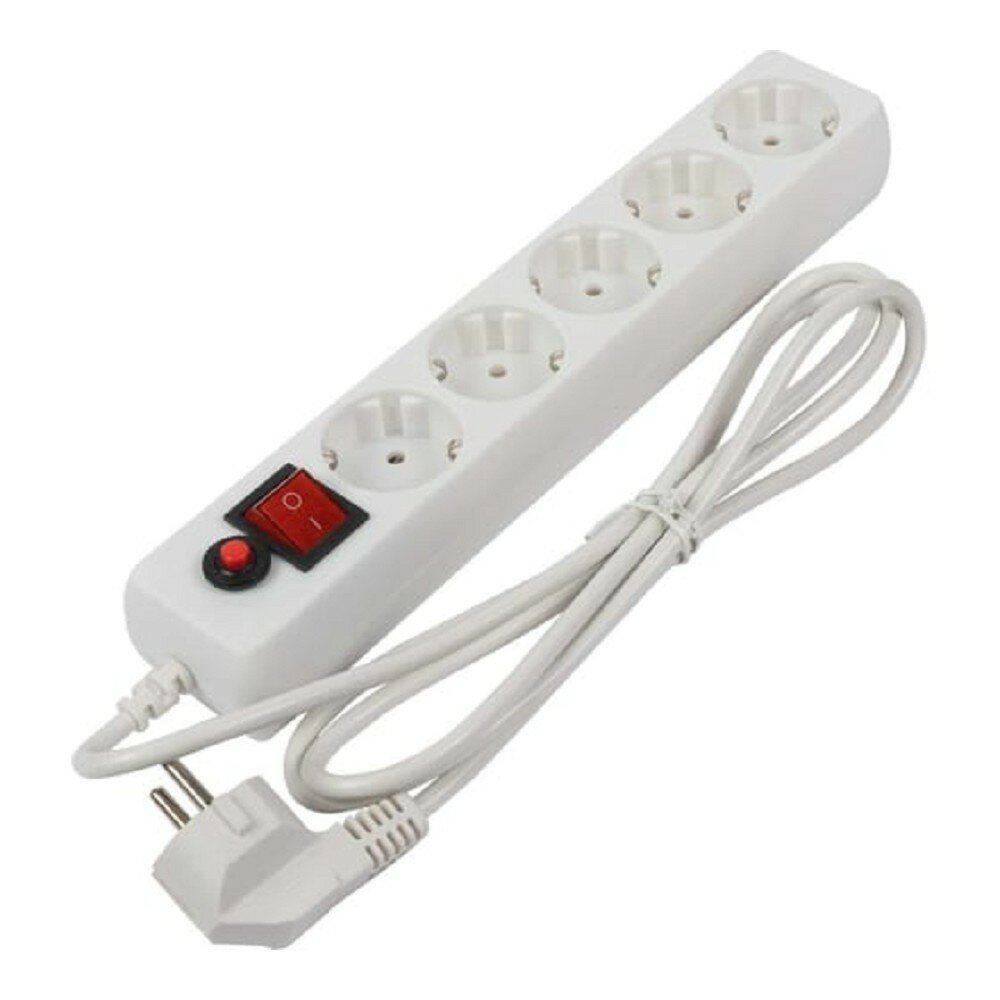 Сетевой фильтр Filum, удлинитель, 5 метров, 5 розеток, белый, предохранитель, с заземлением