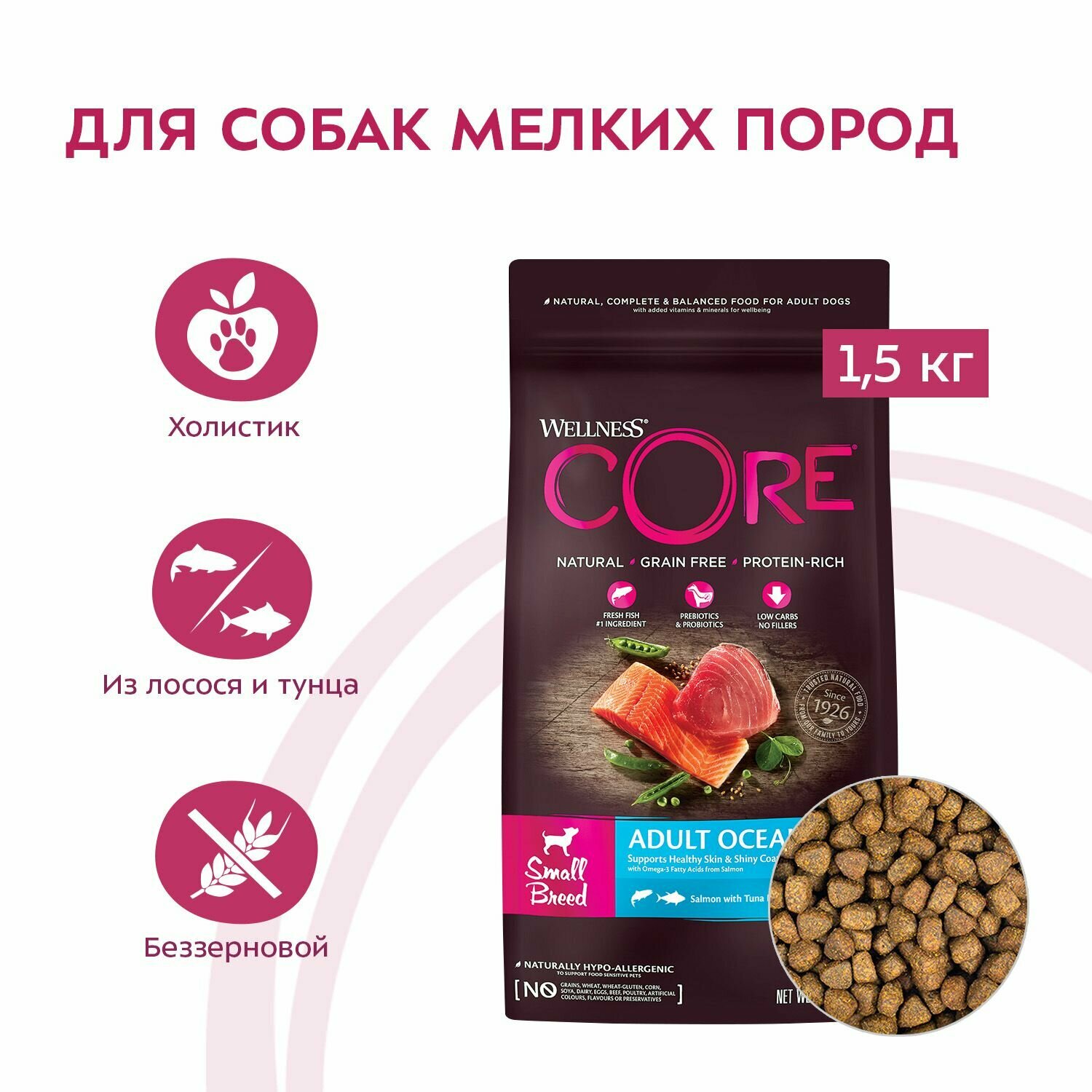 Сухой корм для собак Wellness CORE Ocean, беззерновой, лосось, тунец 1 уп. х 1 шт. х 1.5 кг (для мелких пород)