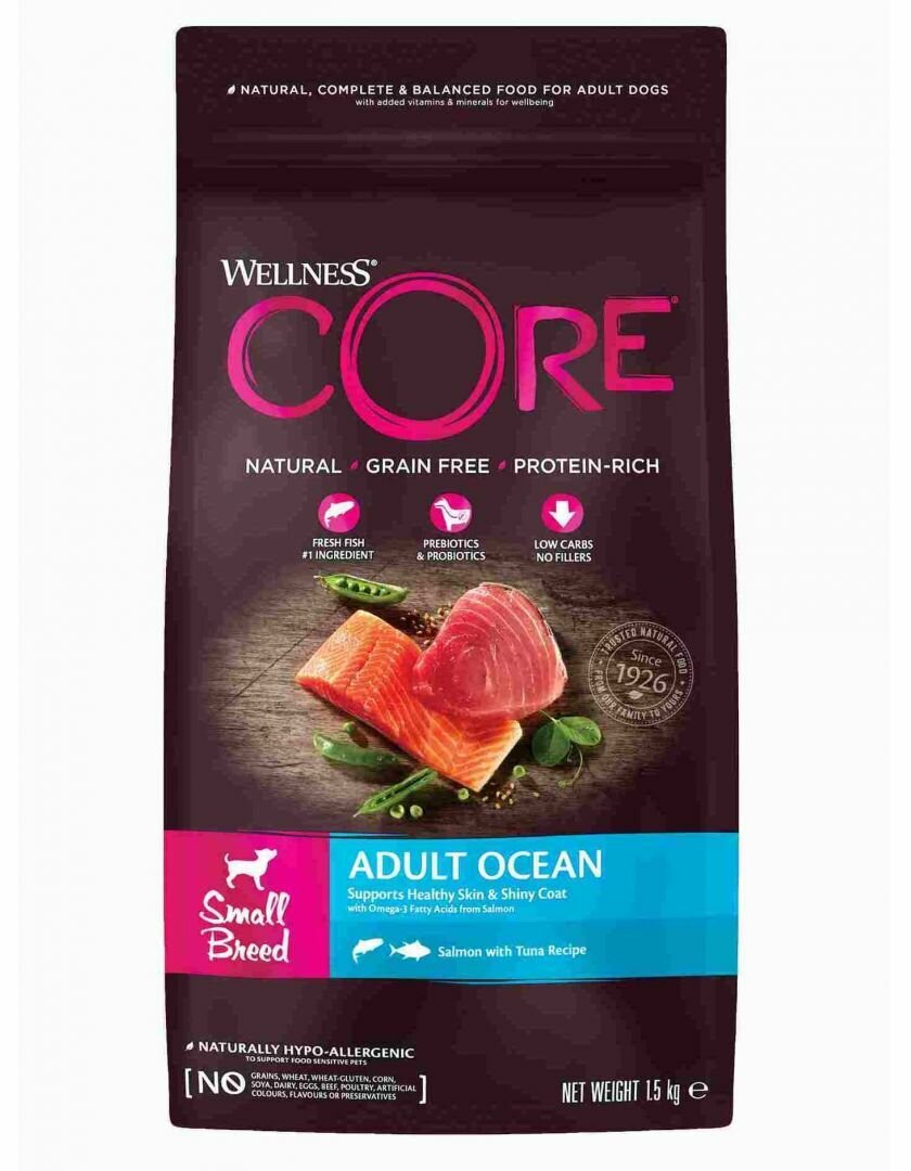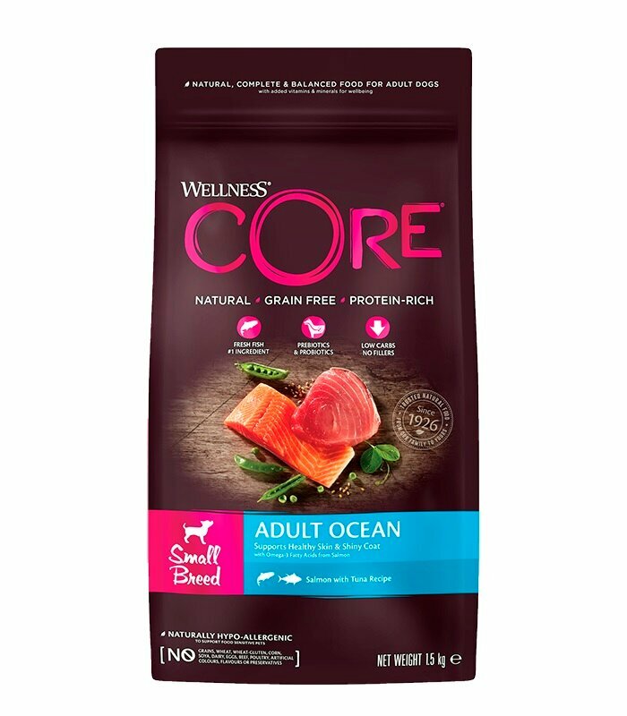 Сухой корм для собак Wellness CORE Ocean, беззерновой, лосось, тунец 1,5 кг (для мелких пород)