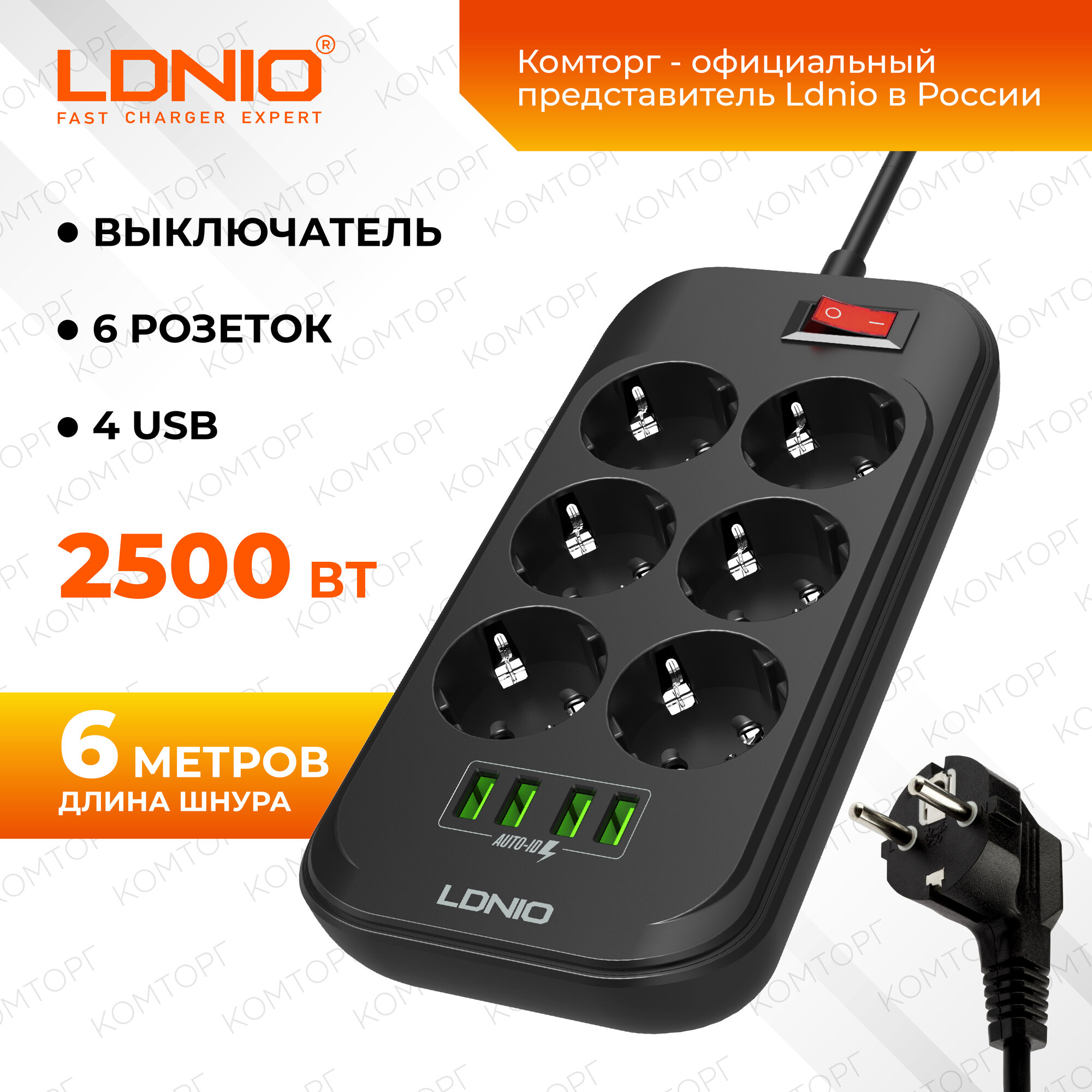 Сетевой фильтр LDNIO SE6403 - 6 розеток 2500Вт медь + USB зарядка 4 порта 3.4A, черный - 6 метров интересное: