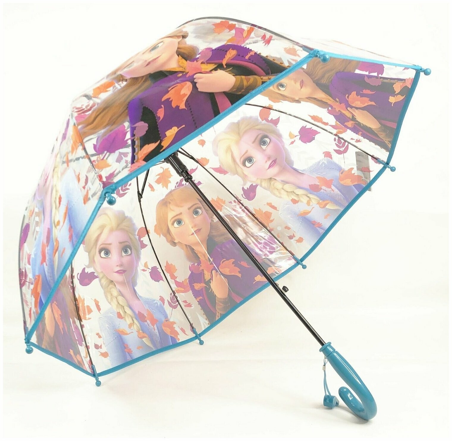 Зонт-трость детский полуавтомат, купол 80 см., 8 спиц, прозрачный, холодное сердце интересное: