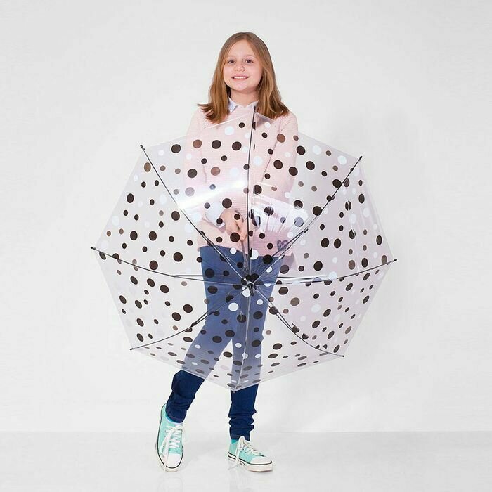 Зонт детский Горохи , полуавтоматический, r 45см, цвет прозрачный/чёрный интересное: