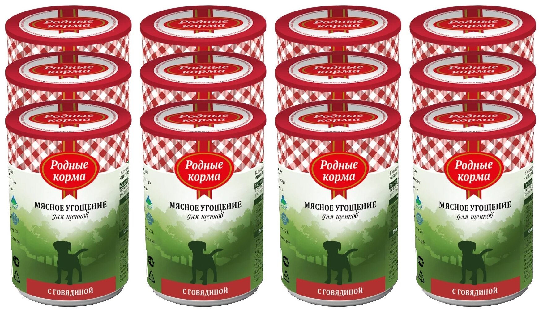 Родные Корма влажный корм для щенков всех пород, мясное угощение с говядиной (12шт в уп) 340 гр