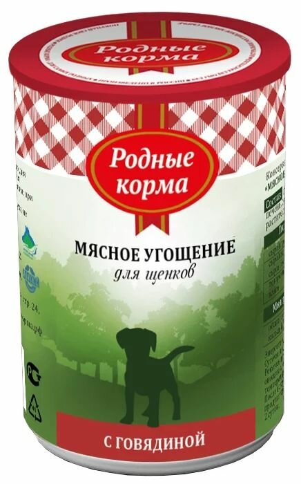 Купить Родные корма Консервы для щенков с говядиной 64587, 0,340 кг (2 шт)
