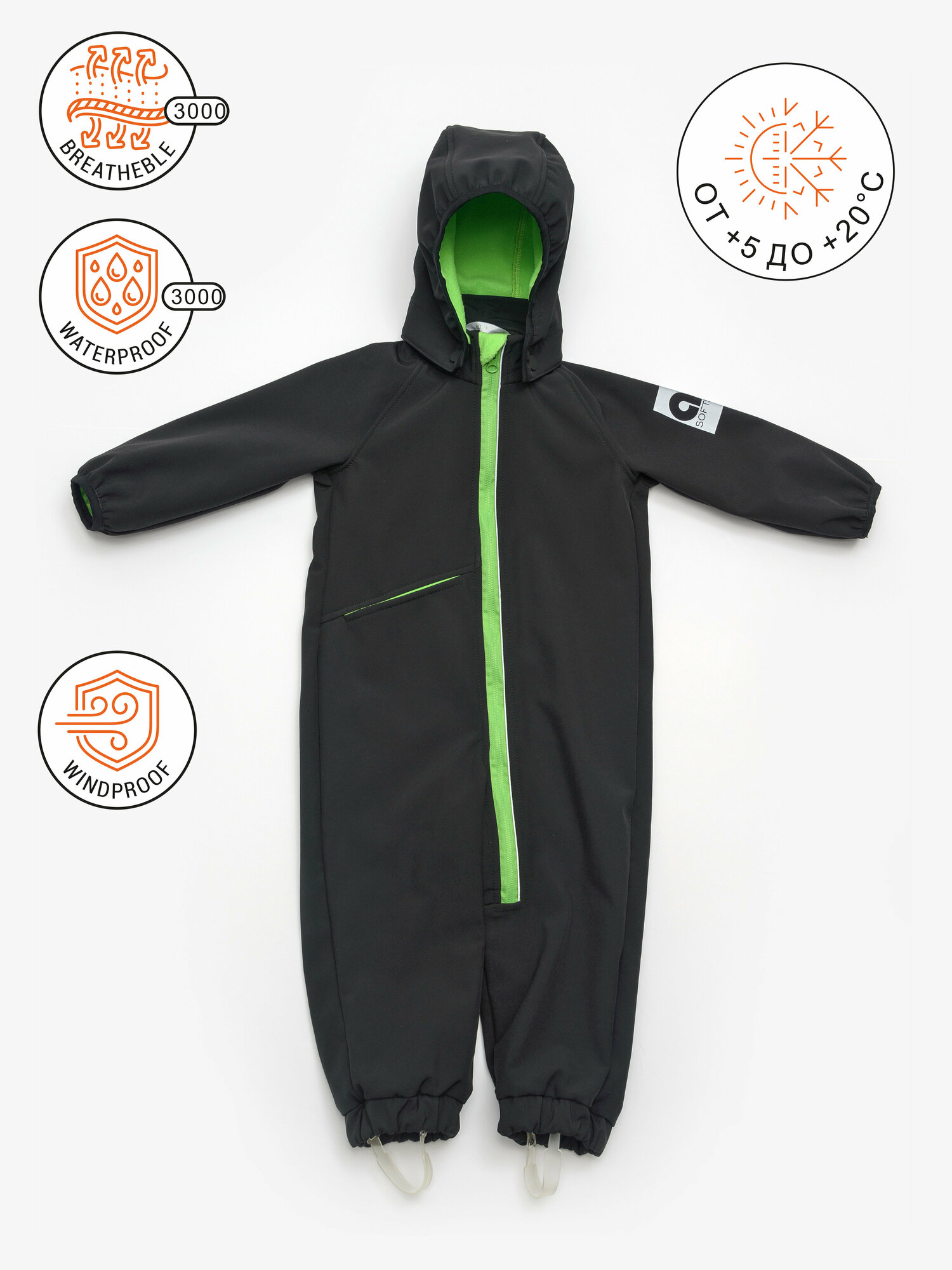 Купить Комбинезон Softshell ARTEL Гарсо черный/зелеоный неон, размер 80