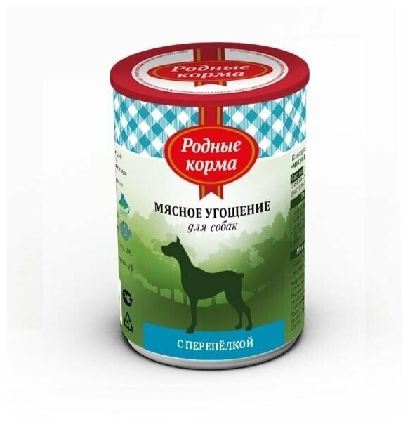 Родные корма Консервы для собак с перепелкой 64596, 0,340 кг (26 шт)