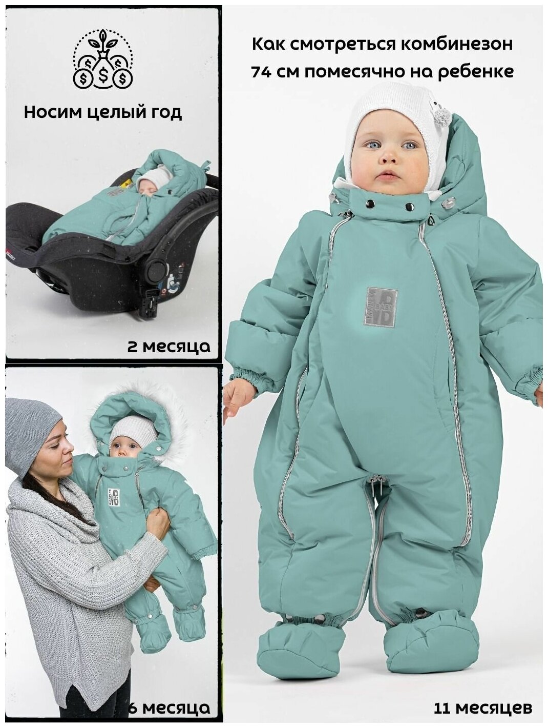 СохранитьКомбинезон трансформер детский для новорожденных зимний. MaLeK BaBy. Серо-зеленый 163шм/2 (74 см) интересное: