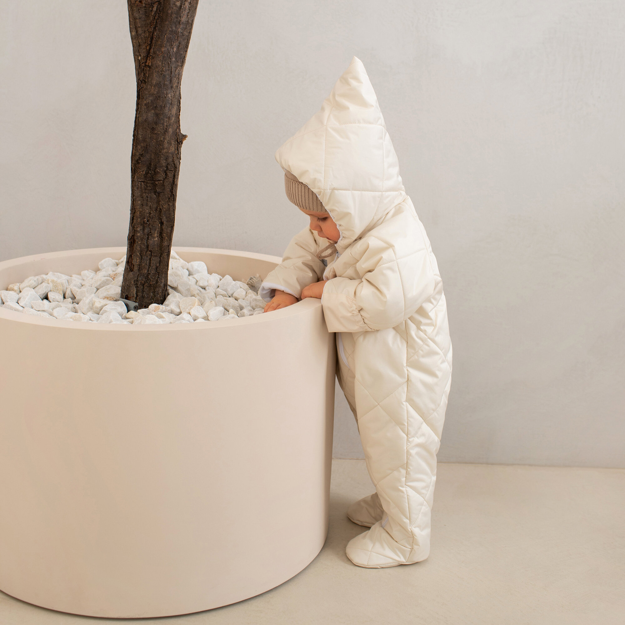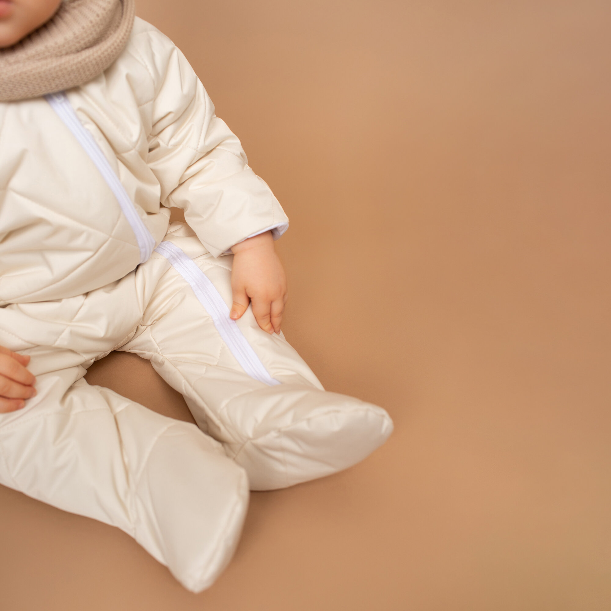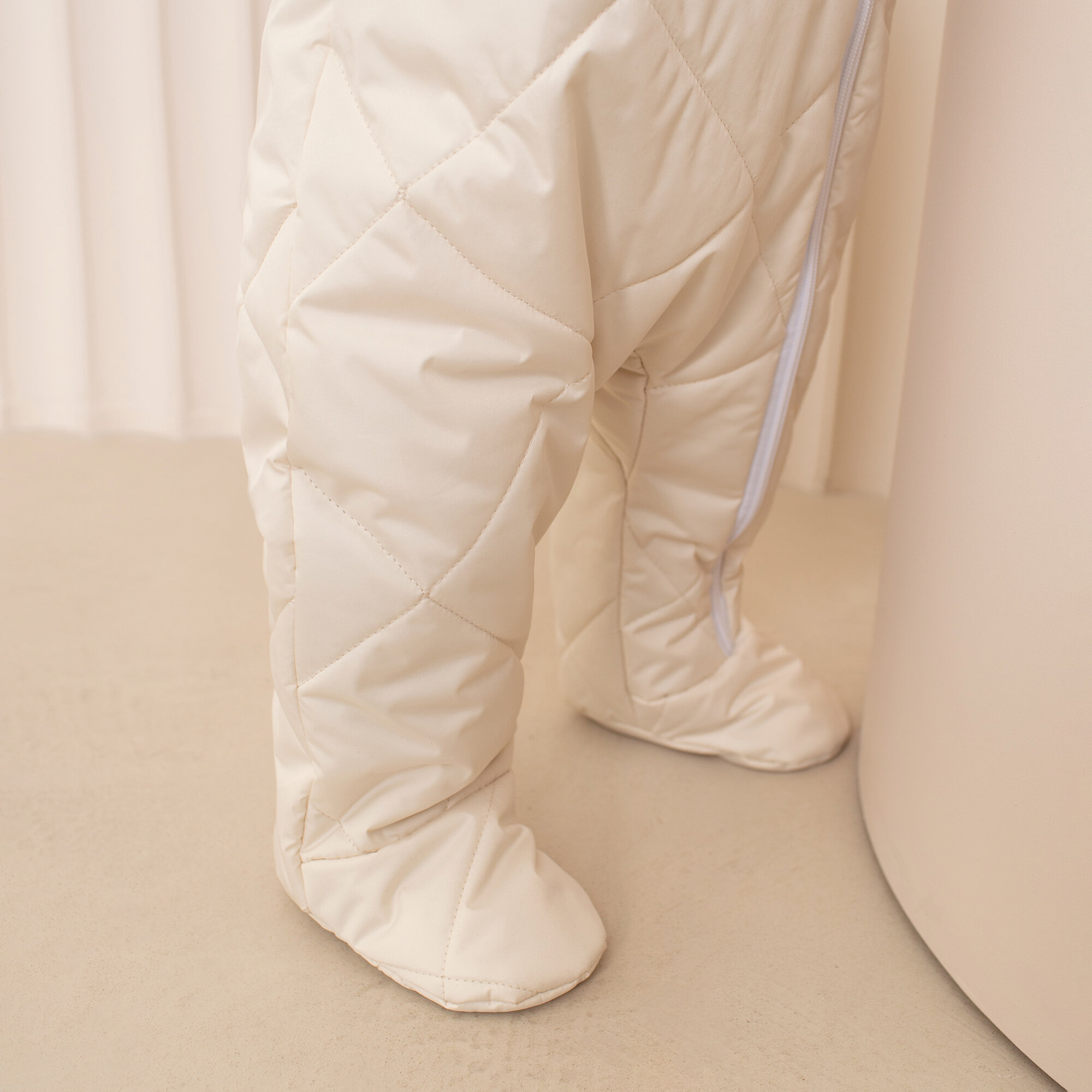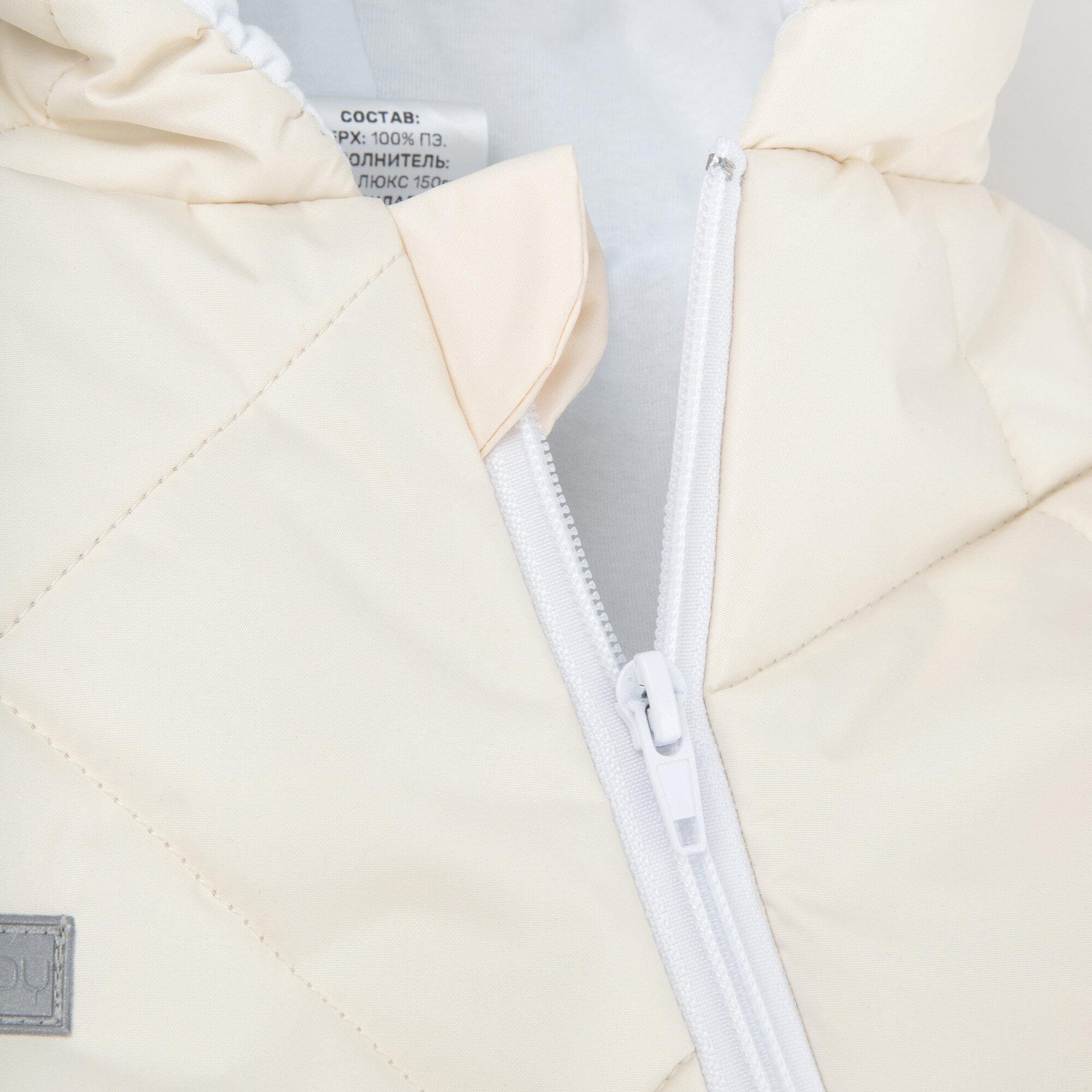 Комбинезон детский демисезонный стеганый с закрытыми ножками Amarobaby ELF, молочный, размер 68