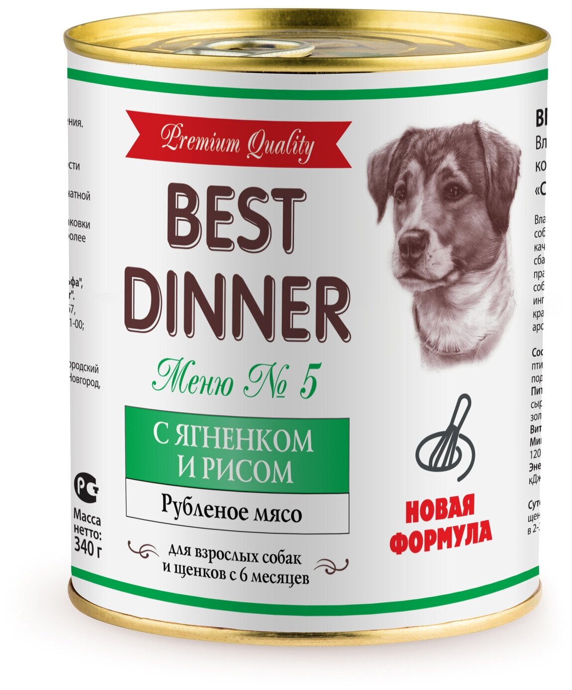 Корм для собак BEST DINNER Premium Меню №5 ягненок с рисом банка 340г (упаковка - 12 шт)