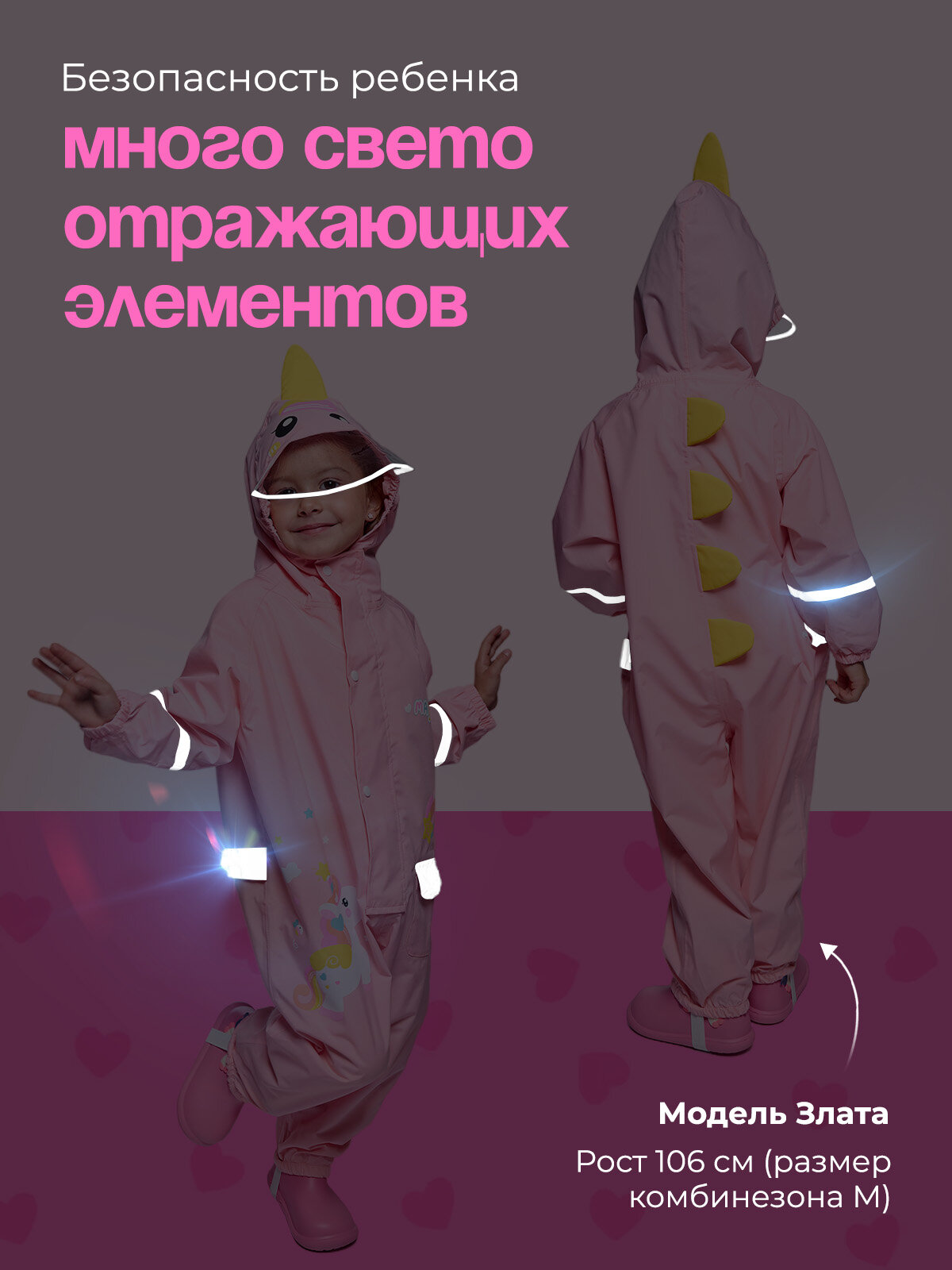СохранитьЯркий розовый комбинезон-дождевик для детей "Единорог" от бренда Cozy&Dozy, размер M интересное: