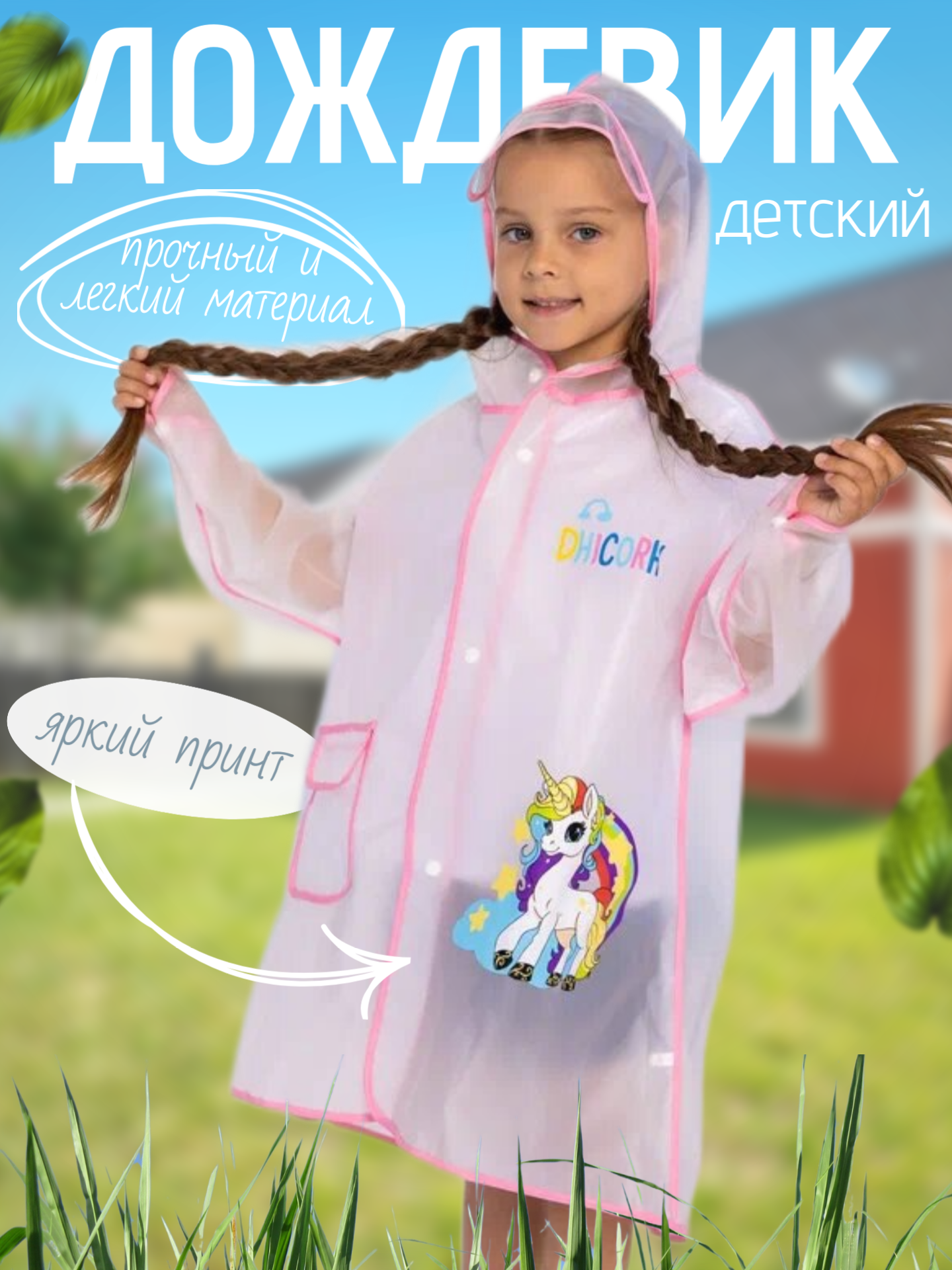 Дождевик детский на кнопках непромокаемый плащ интересное: