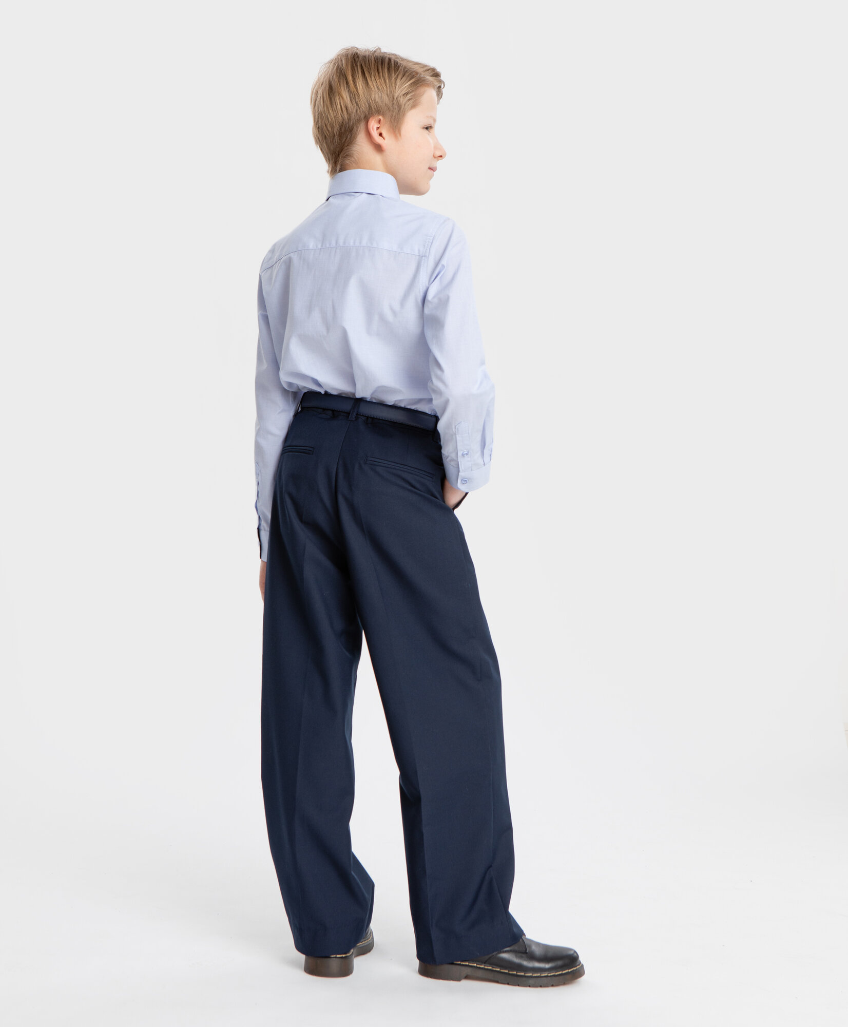 Брюки прямого кроя с защипами синие Button Blue, р. 134, мод. 224BBBS63061000
