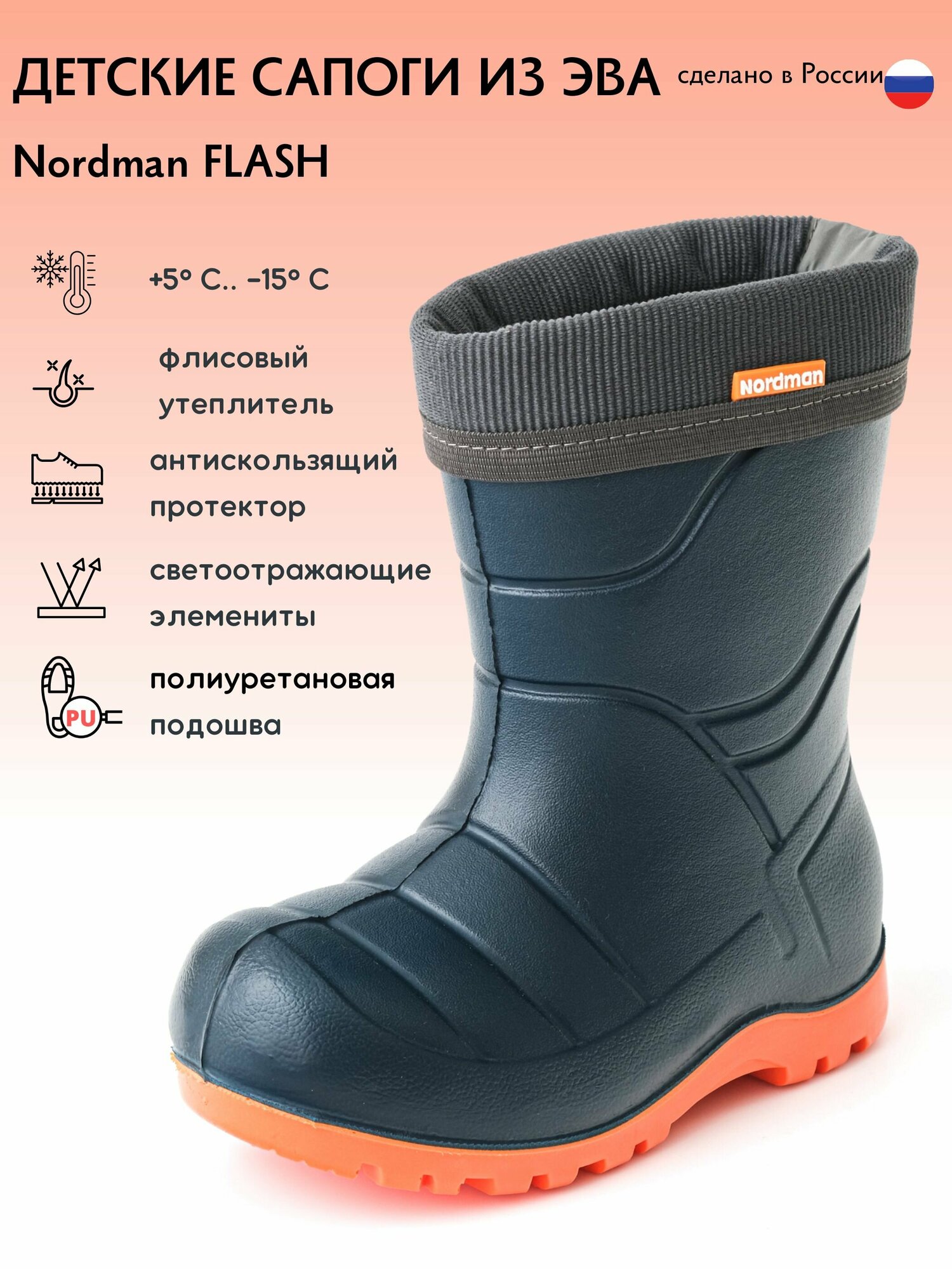 Резиновые сапоги Nordman Flash со съемным флисовым утеплителем 912-D05 (черные) - размер 32-33