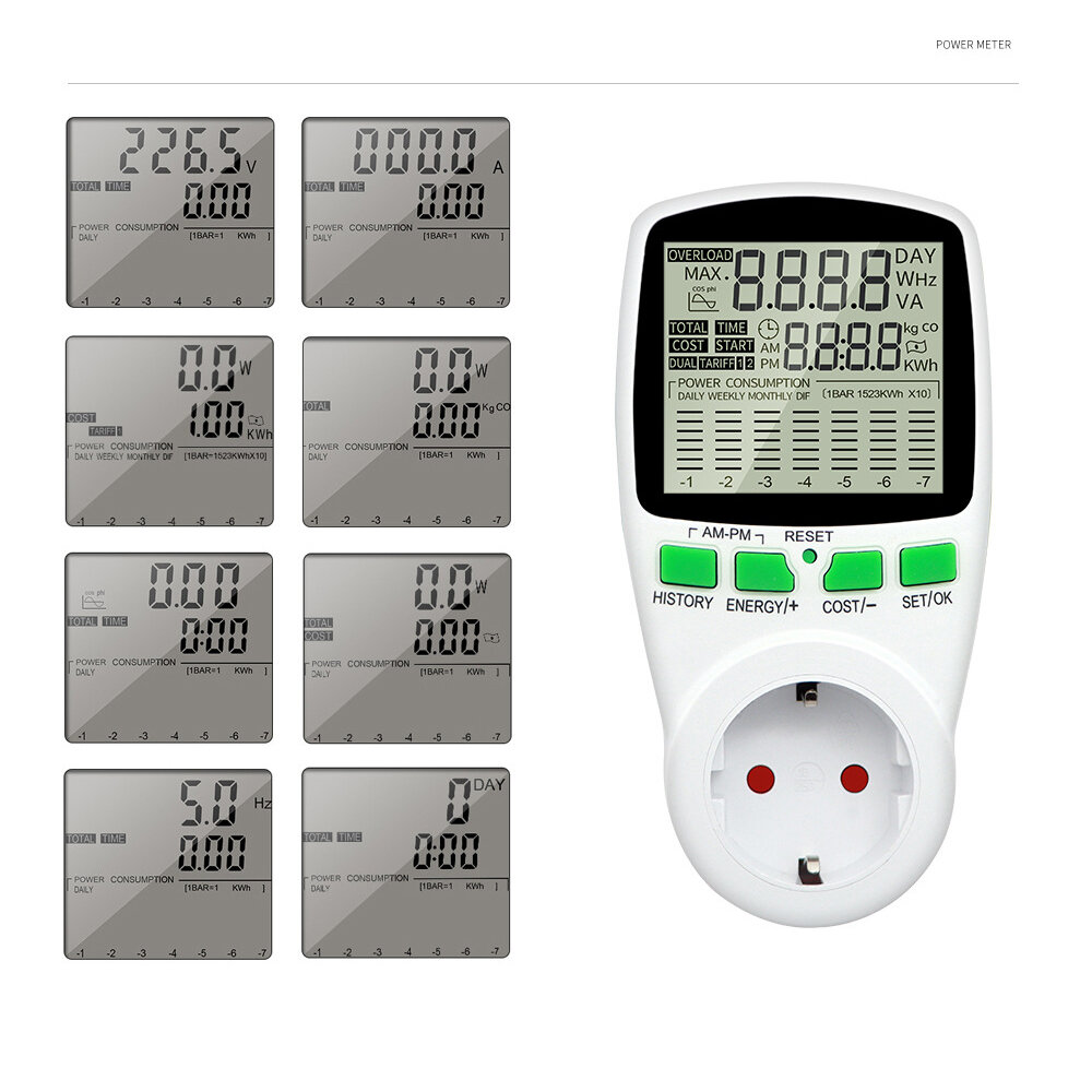 Купить Ваттметр, измеритель мощности переменного тока цифровой ваттметр 220В, вольтметр, амперметр, счетчик