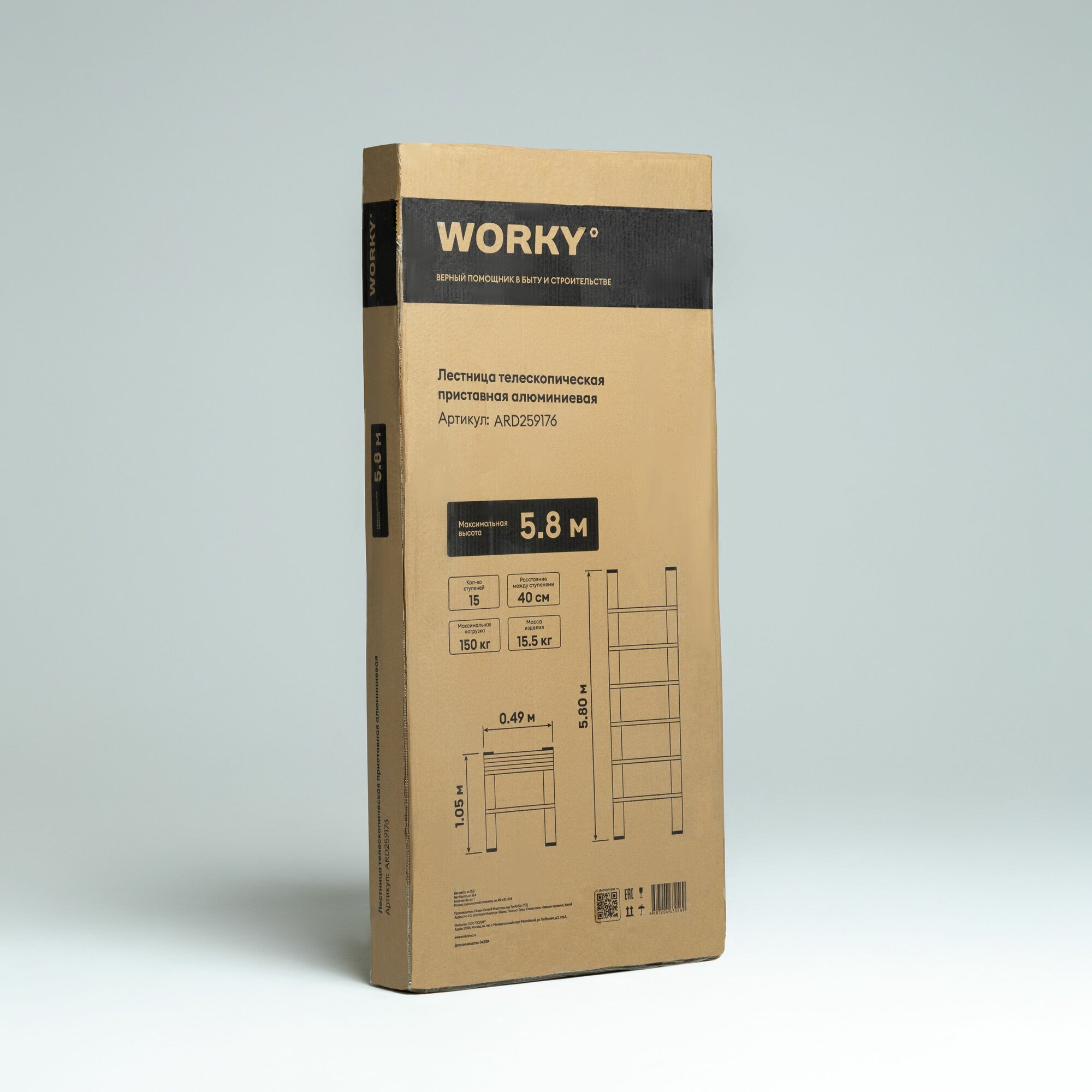 Купить Лестница телескопическая WORKY 5,8 м 15 ступеней