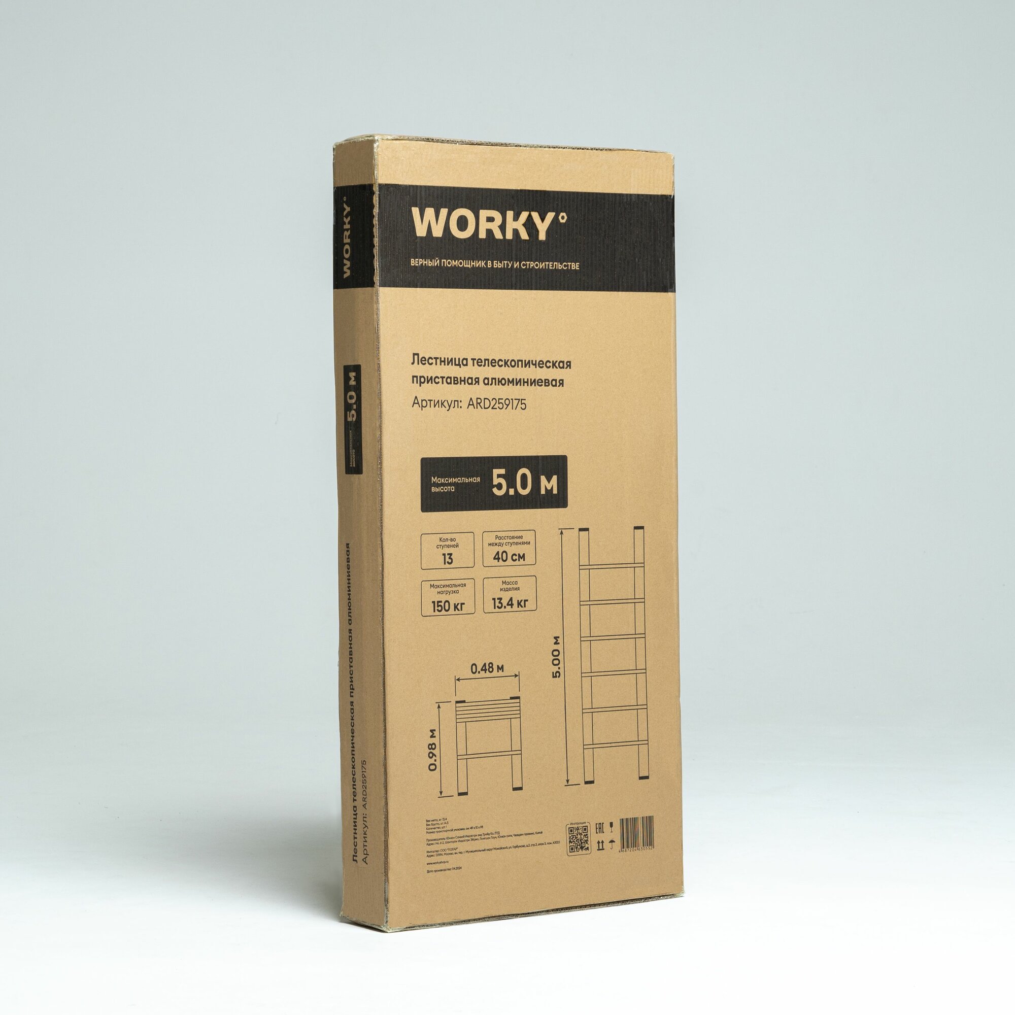 Купить Лестница телескопическая WORKY 5,0 м 13 ступеней