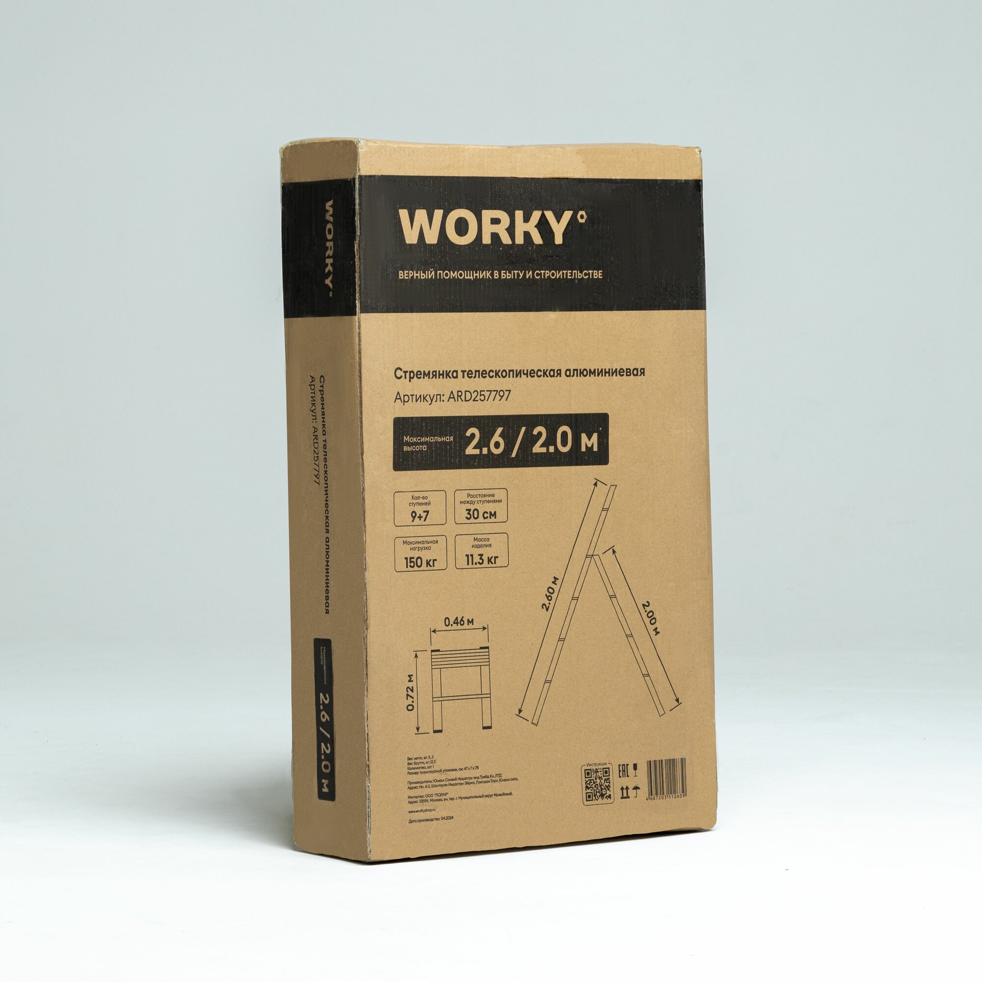 Купить Лестница стремянка телескопическая WORKY 9+7 ступеней 2,6м + 2,0м
