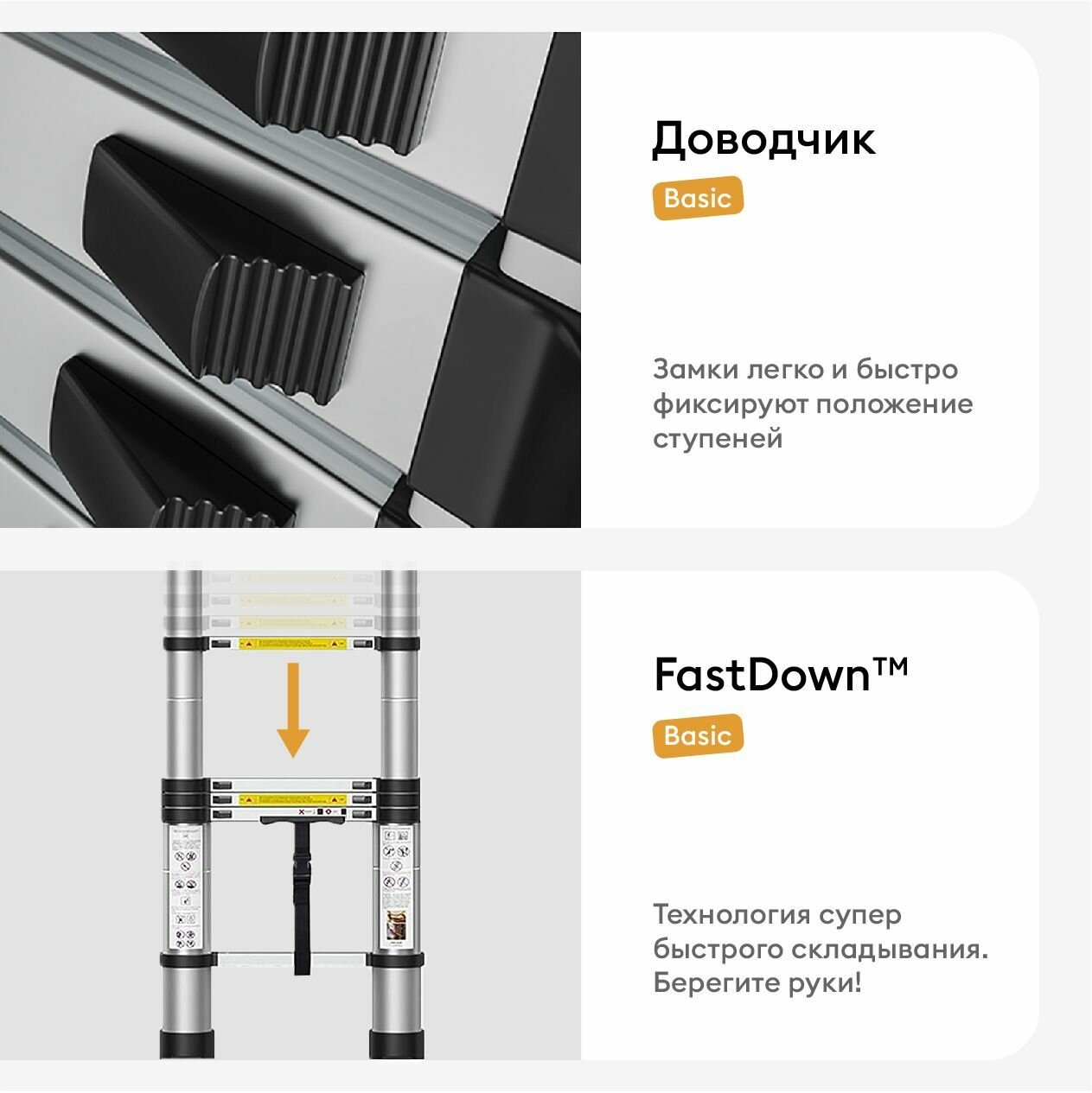 | Особенности | антискользящее покрытие, приставная, складная конструкция, телескопическая |