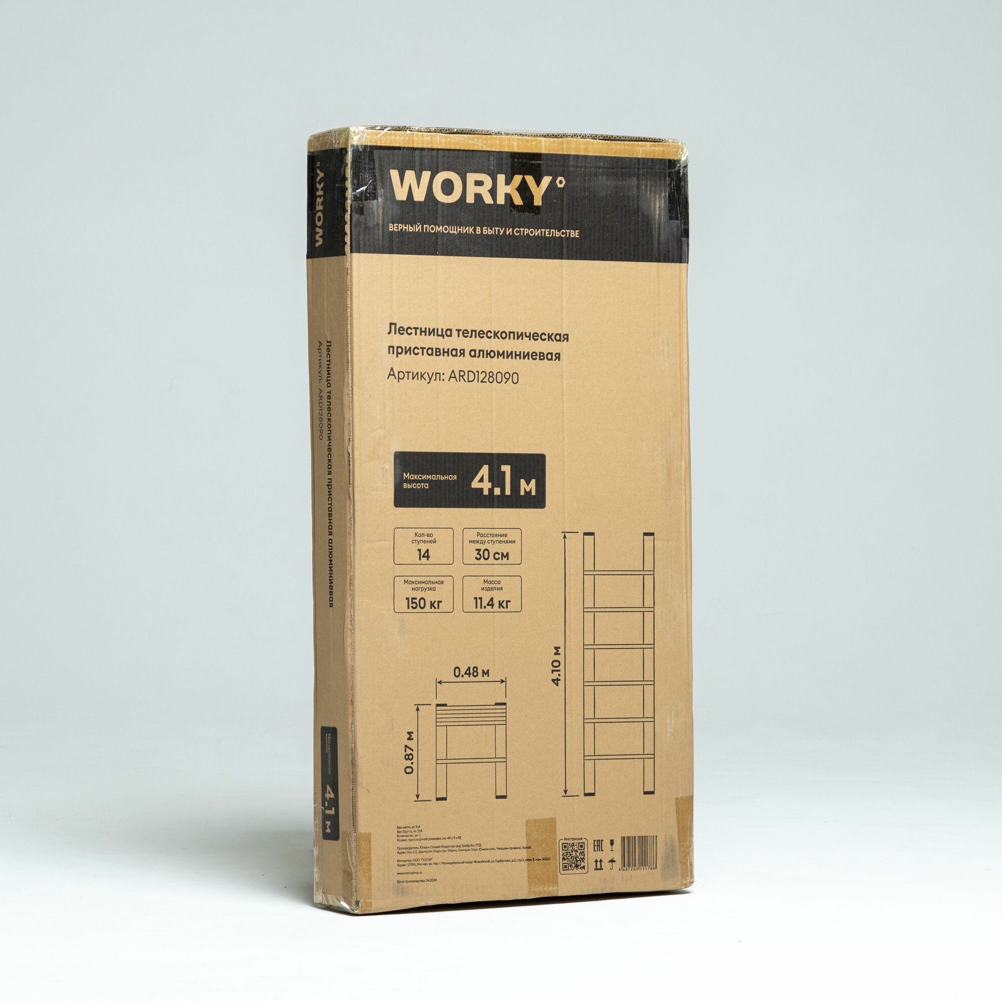 Купить Лестница телескопическая WORKY 4,1 м 14 ступеней
