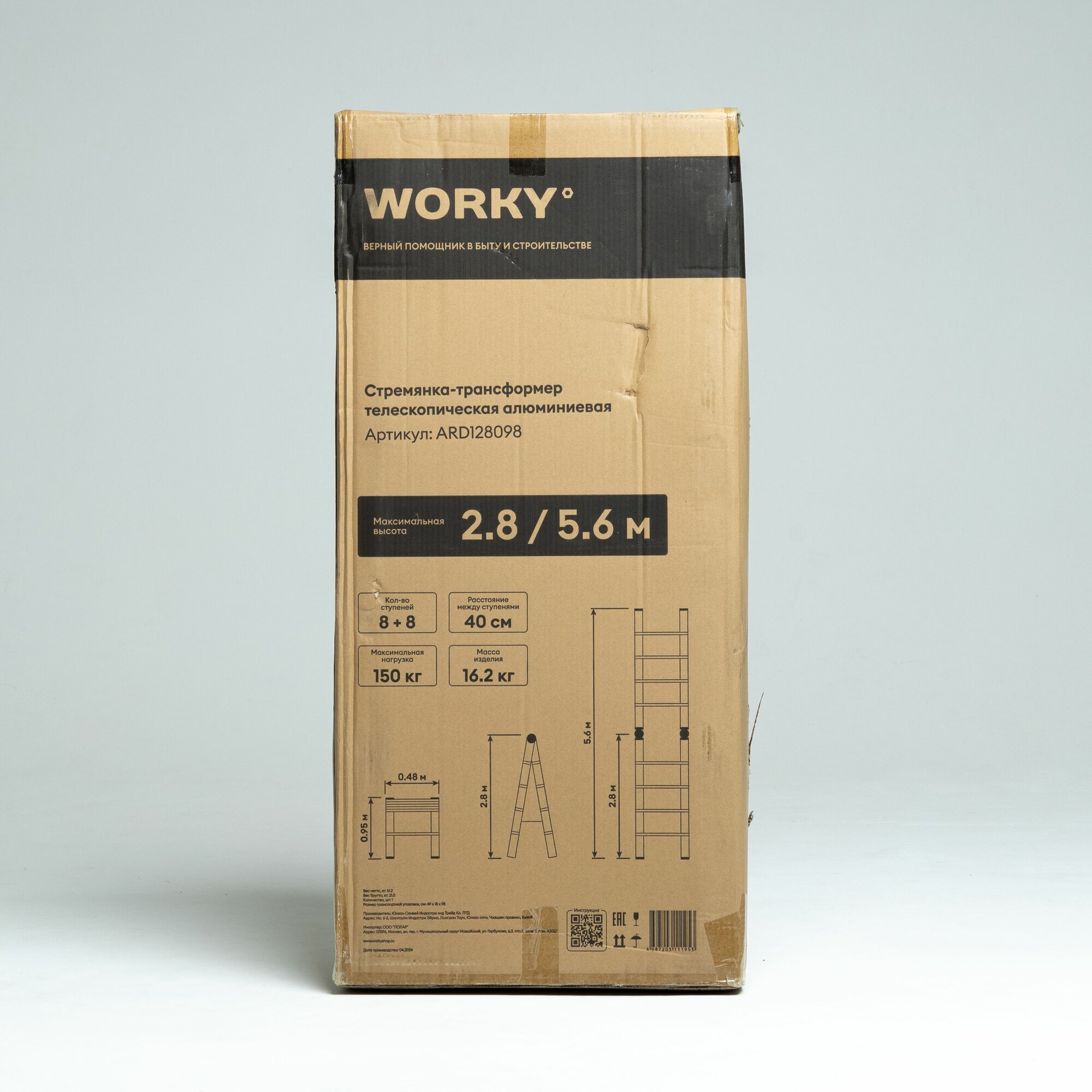 Купить Лестница-стремянка телескопическая WORKY 2,8м/5,6м 8/16 ступеней